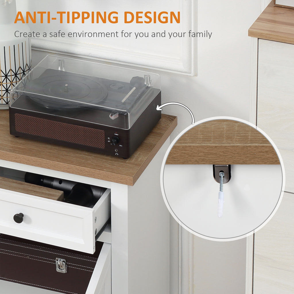 - Thoughtful Workmanship: The entryway cabinet is melamine coated for easy cleaning with a quick wipe down. An anti-tipping design allows attachment to the wall for safety and security with heavy items.