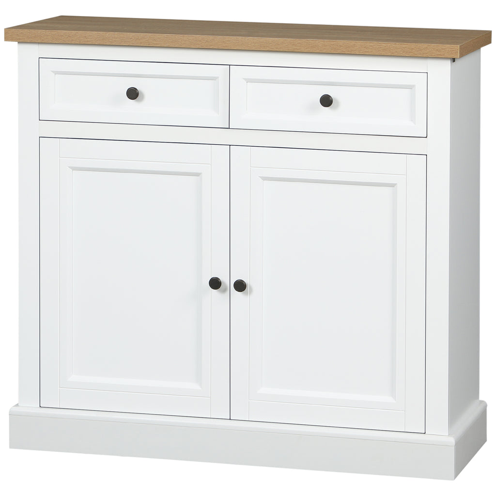 - Storage Space: Use this storage cabinet to create an attractive display where you can unload serving dishes on the top, keep small accessories in the drawers, and tuck the cooking utensils inside the cabinets to keep your belongings organized.