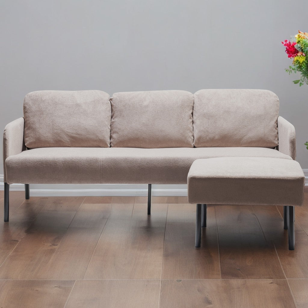 3 Seater Beige Polyester Fabric Sofa with Ottoman