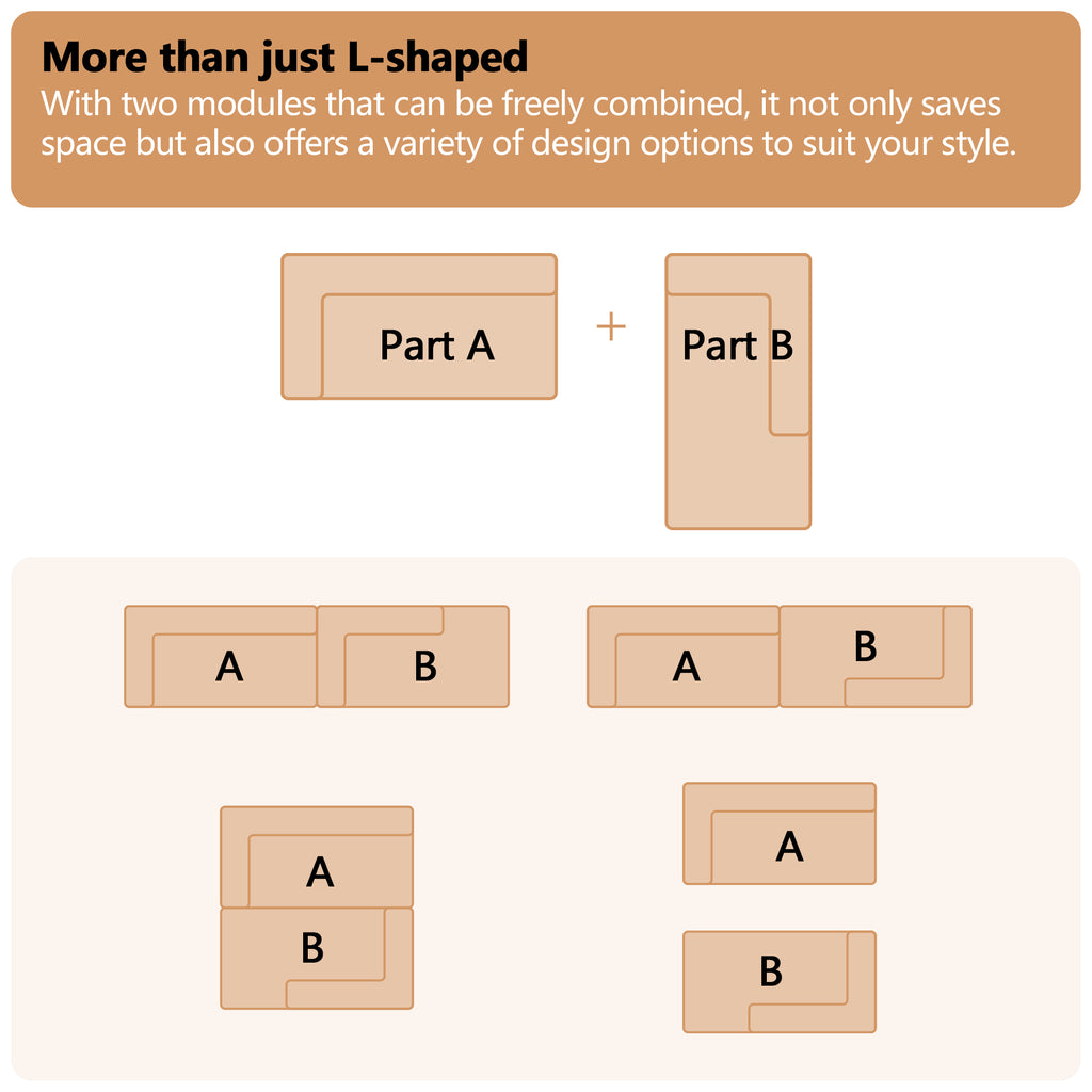 - 3.[Modular Sofa]: It’s more than just an L-shaped sofa. With two modules that can be freely combined, it not only saves space but also offers a variety of design options to suit your style.