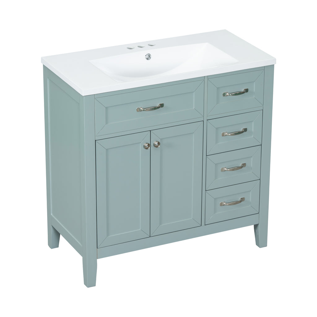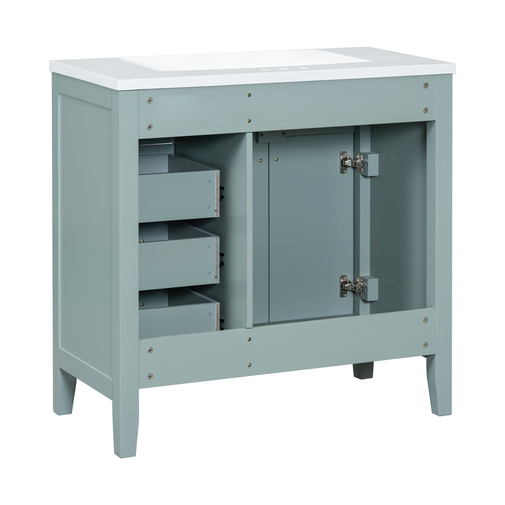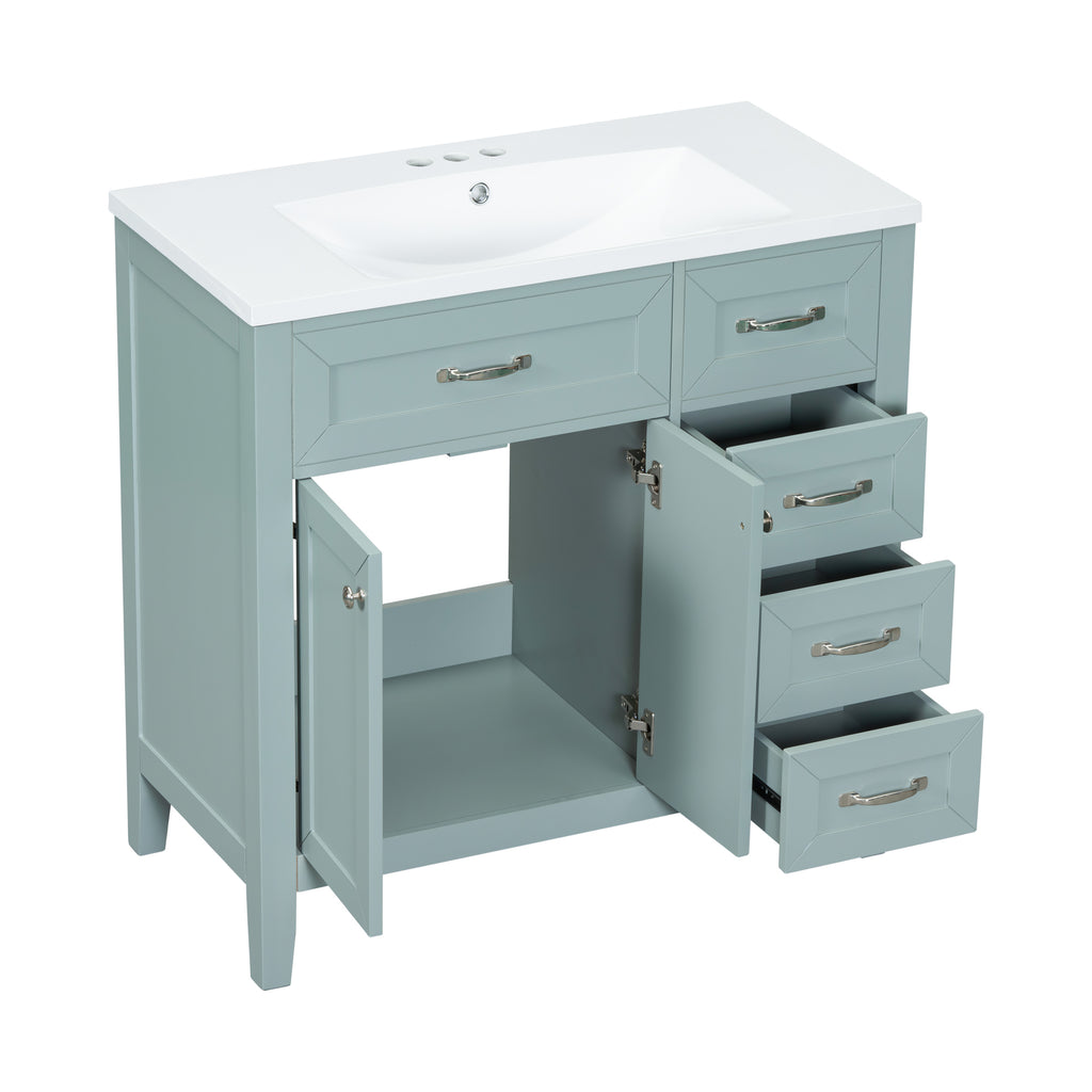 - Stylish 36' Bathroom Vanity: This 36' bathroom vanity is suitable for bathroom in any decoration style. Freestanding green vanity cabinet with silver handles complies with your bathroom facilities. The groove design on the door and drawer increases the artistry and aesthetics of the home environment. If you're looking for a simple but stylish bathroom sink vanity, our product will be a great choice to upgrade your bathroom.