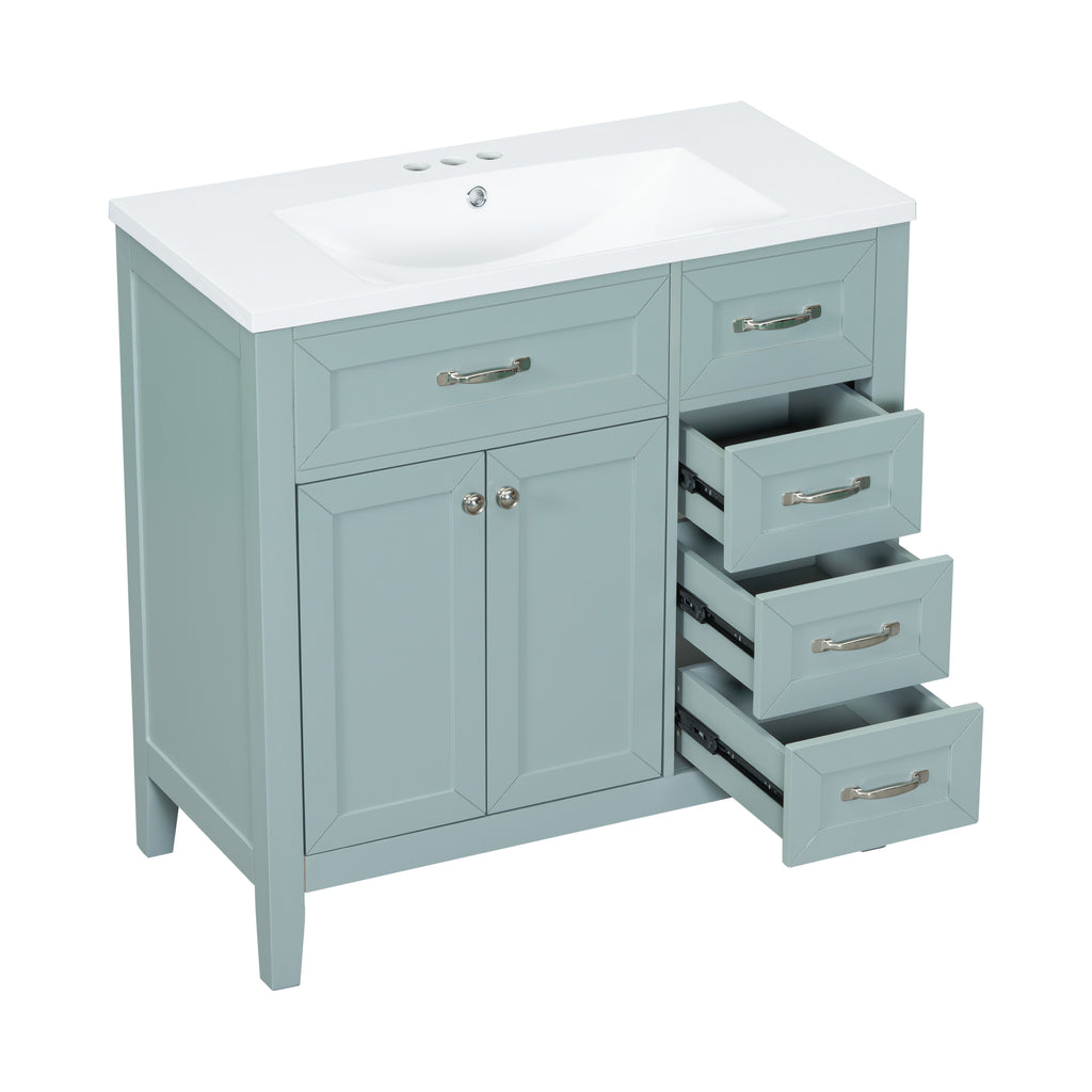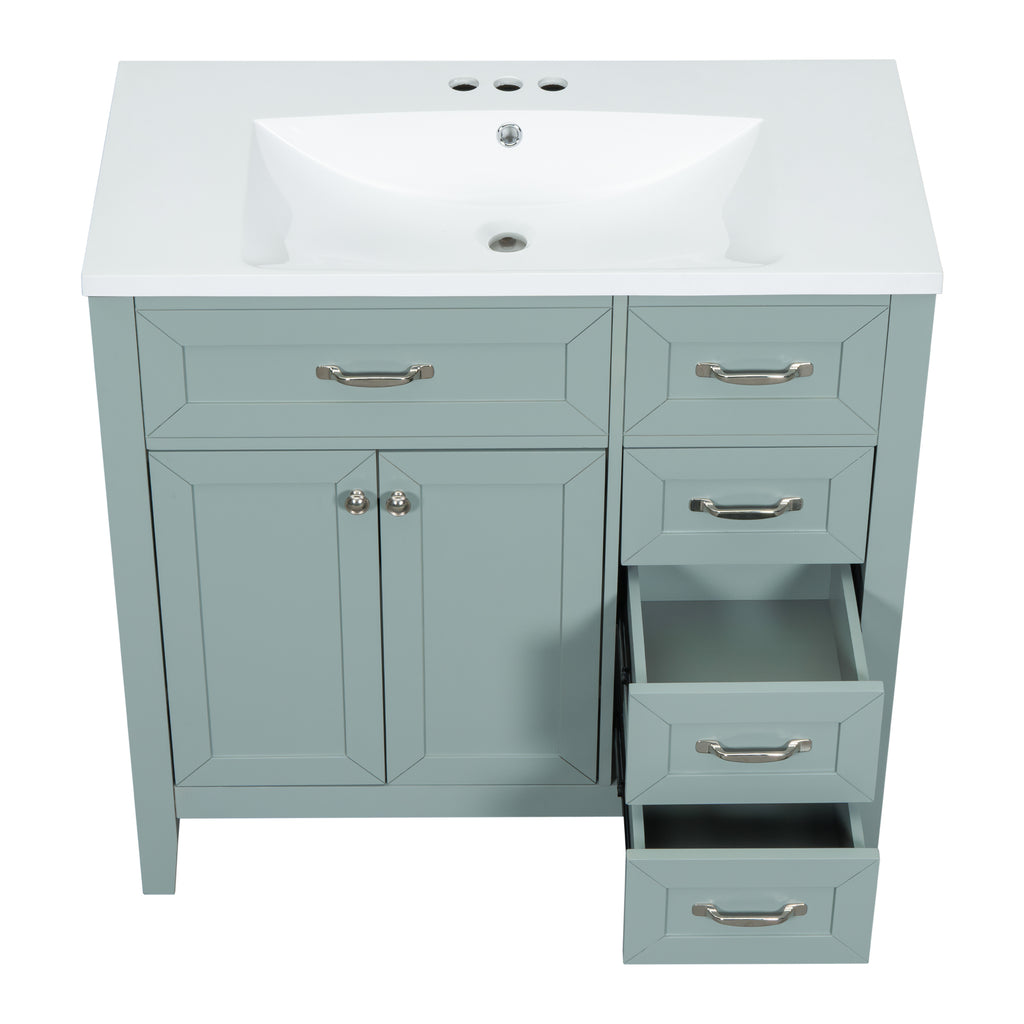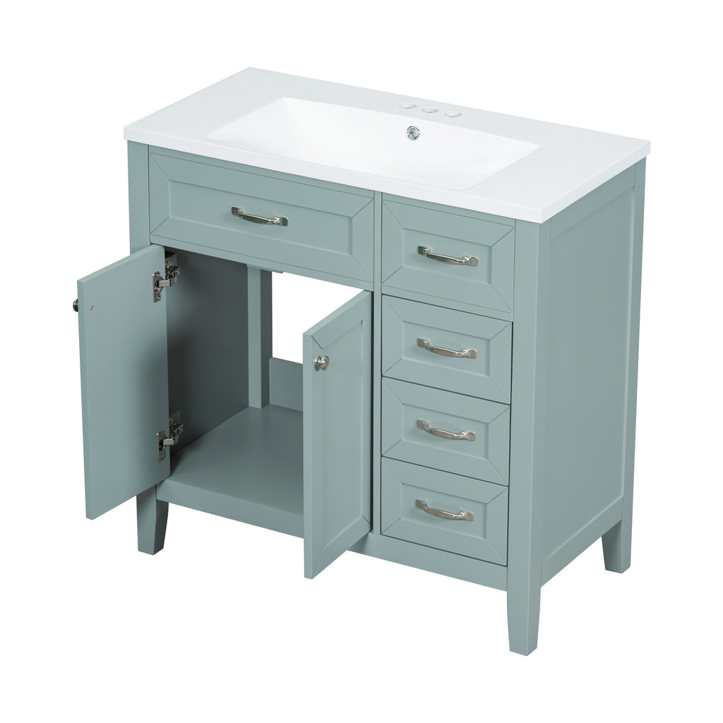 - Stylish 36' Bathroom Vanity: This 36' bathroom vanity is suitable for bathroom in any decoration style. Freestanding green vanity cabinet with silver handles complies with your bathroom facilities. The groove design on the door and drawer increases the artistry and aesthetics of the home environment. If you're looking for a simple but stylish bathroom sink vanity, our product will be a great choice to upgrade your bathroom.