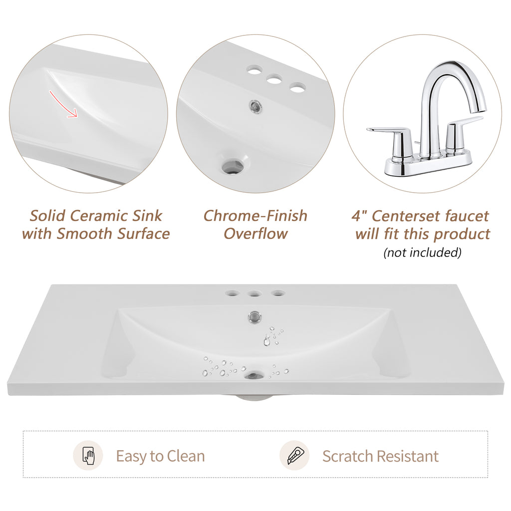 - Smooth Ceramic Sink: Our bathroom basin sink is made of solid ceramic with smooth and water-proof finish, which hardly leaves water stains. The pre-drilled three holes on the top is available to 4' centerset faucet (not included). Besides, the overflow with metal circle is in case of water spilling over when you forgot to turn off the tap.