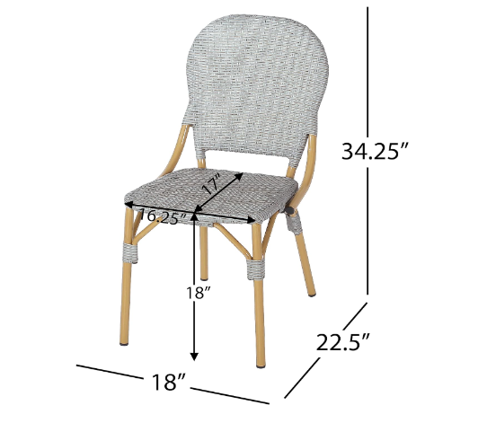 - DIMENSIONS: Choose an accessory that is the perfect size for you and your furniture. Each chair is 17.75” W x 23.00” D x 34.50” H. You will love how much your space can transform with the simple addition of this charming chair set.