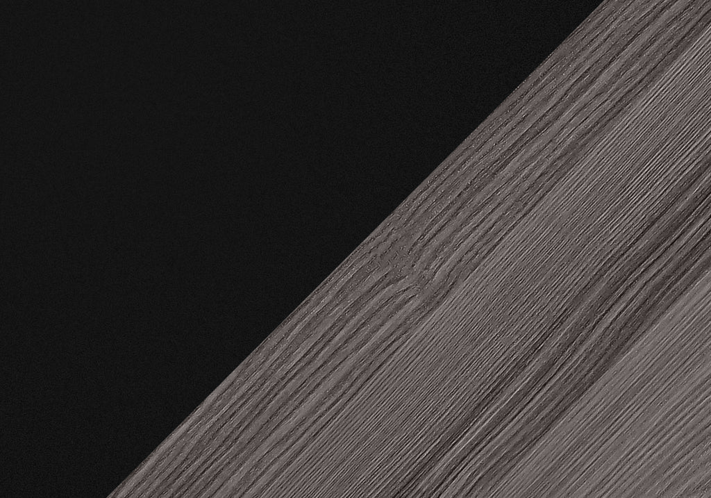 - Black and grey wood look media stand will be a stand-out in your living room, bedroom, basement or den