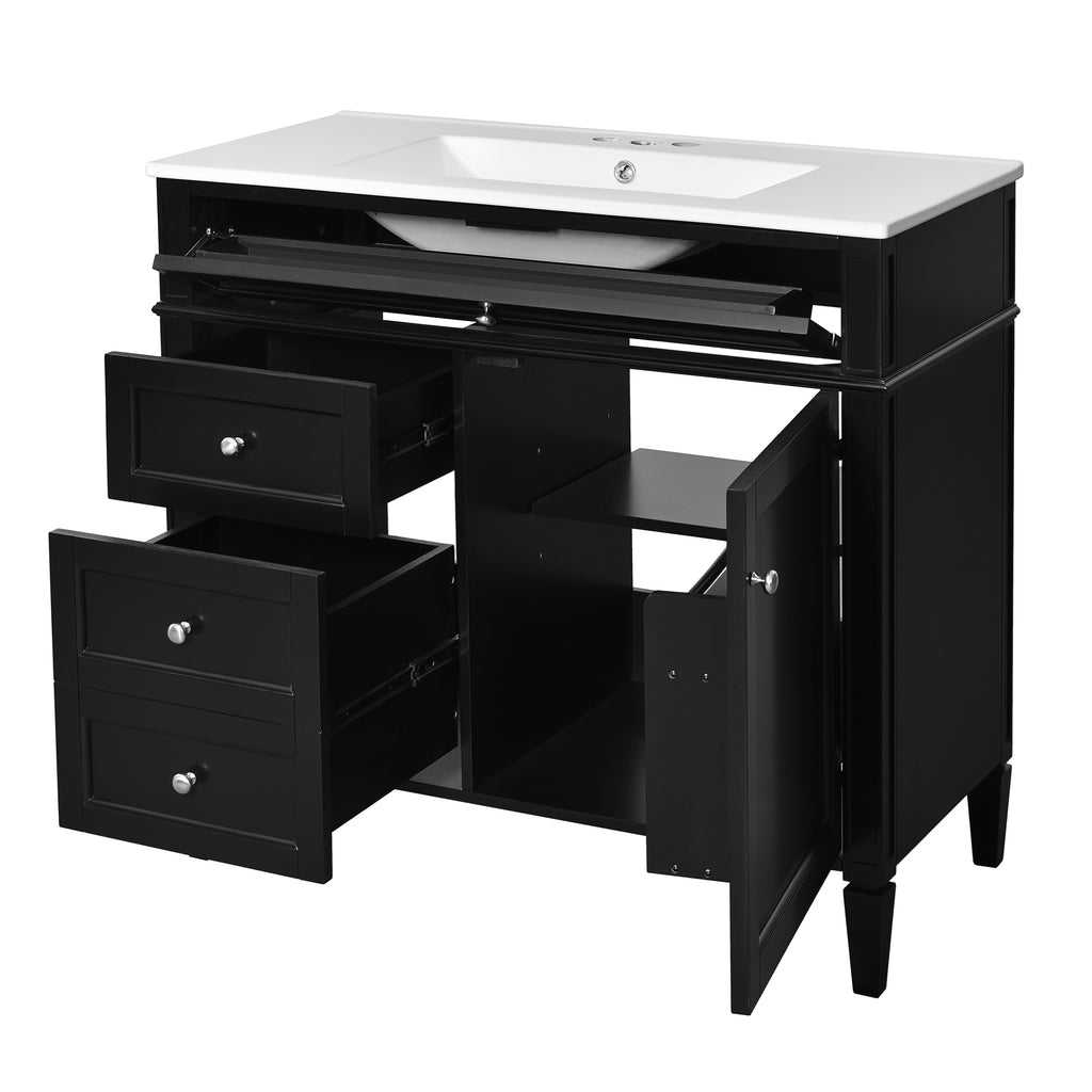 - [Amber Storage] In order to meet your storage needs for various items, this bathroom vanity is equipped with very sufficient storage space. The entire bathroom cabinet has two drawers for daily necessities, a tip-out drawer for small items, and a cabinet for medium and large items with shelves that distribute space reasonably. In order to further rationalize and expand the space you can use, we also designed the cabinet door organizer on the cabinet door, so that there is a lot of usable space.