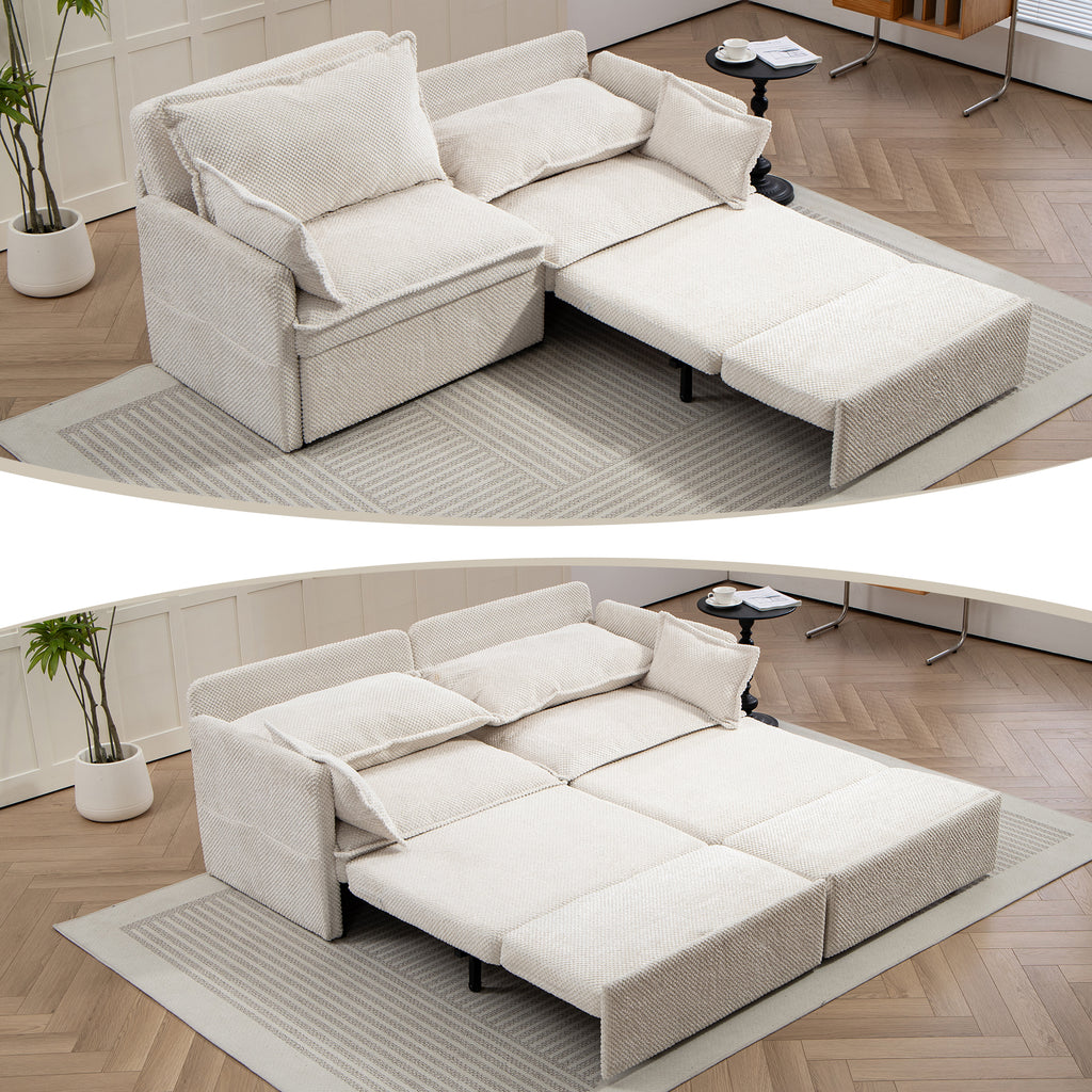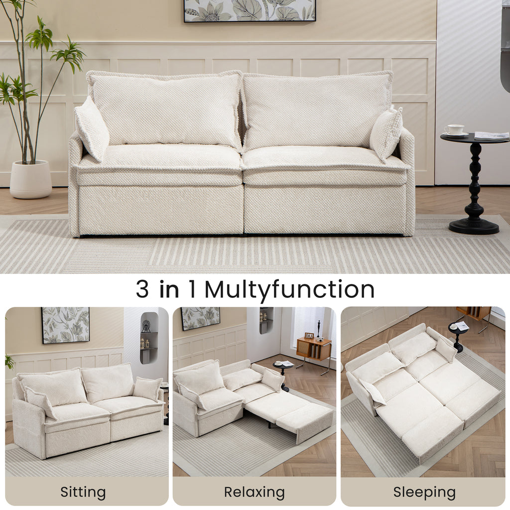- 【3 in 1 Pull Out Couch Bed】This sofa bed offers dual use: a big comfy couch & an L-shaped sofa & sleeper sofa bed. Pull out the hidden bed frame under the couch to transform it into a 73.6inch sofabed. The roller slides smoothly for easy use. The strong construction and stabilizing legs ensure that the comfortable sofa bed can accommodate the weight of two adults. Capacity up to 800 pounds.
