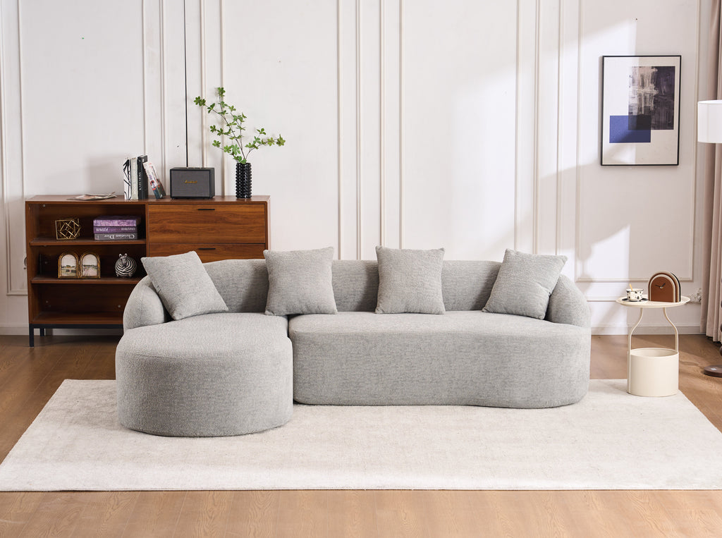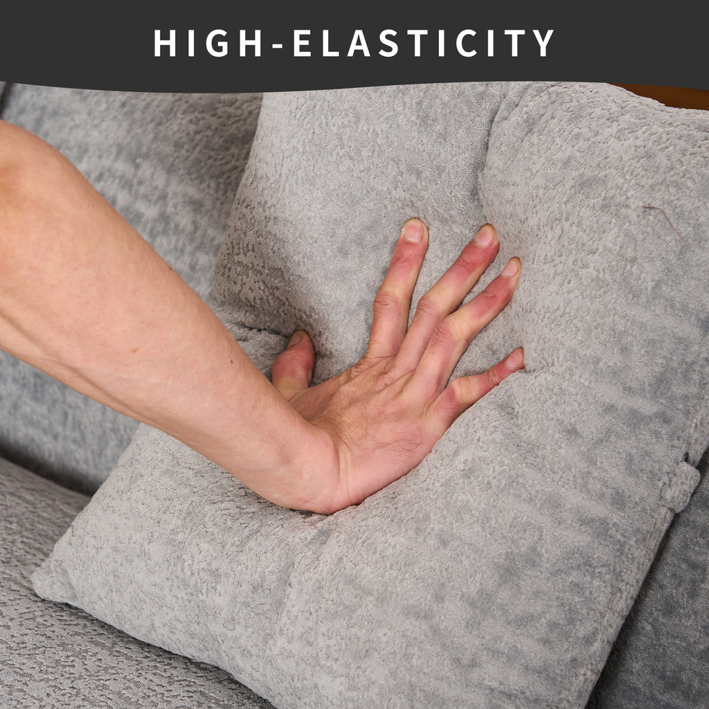 - L Sofa with wider armrests, deeper seat depth, and raised backrest provide a more comfortable seating experience. The 4 small pillows included for free can be cradled in your arms or leaned against your back, allowing you and your family to relax even more. The super wide sofa gives every part of your body plenty of space to relax.