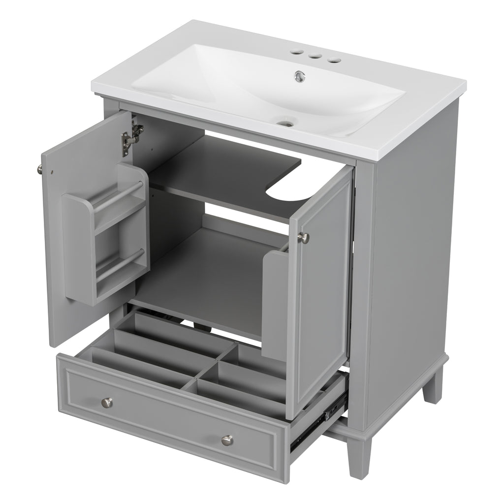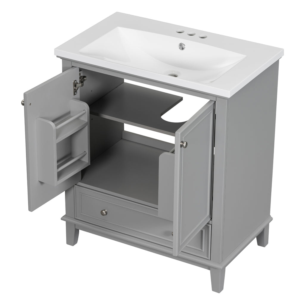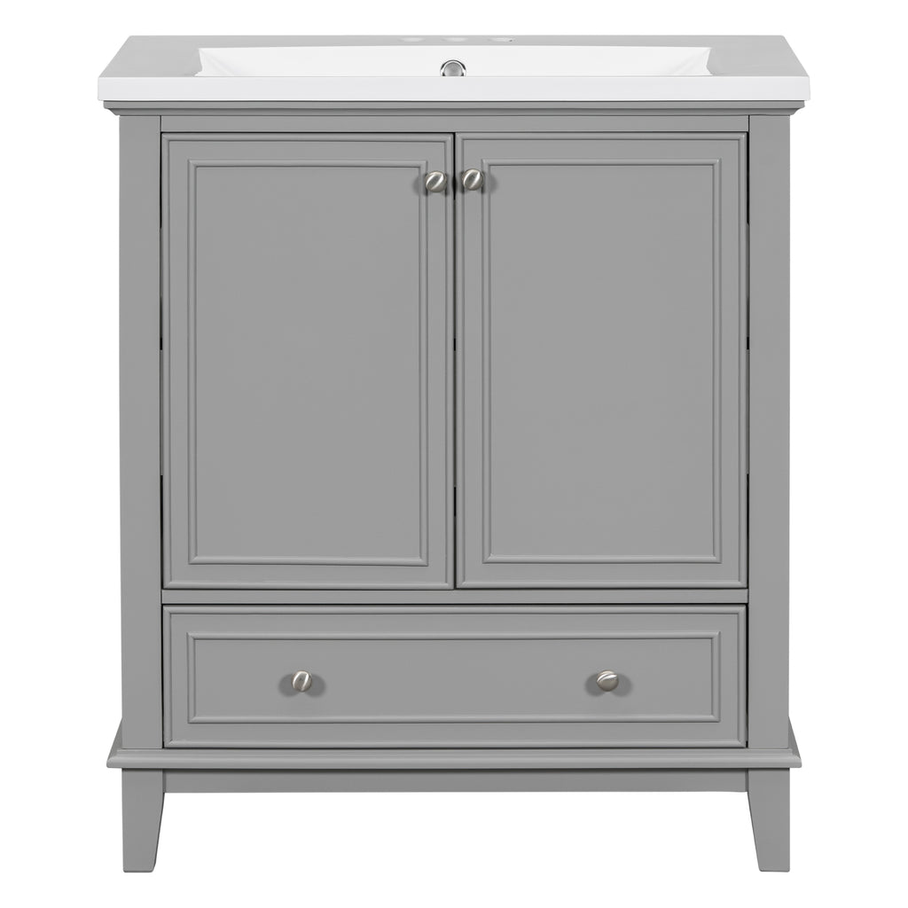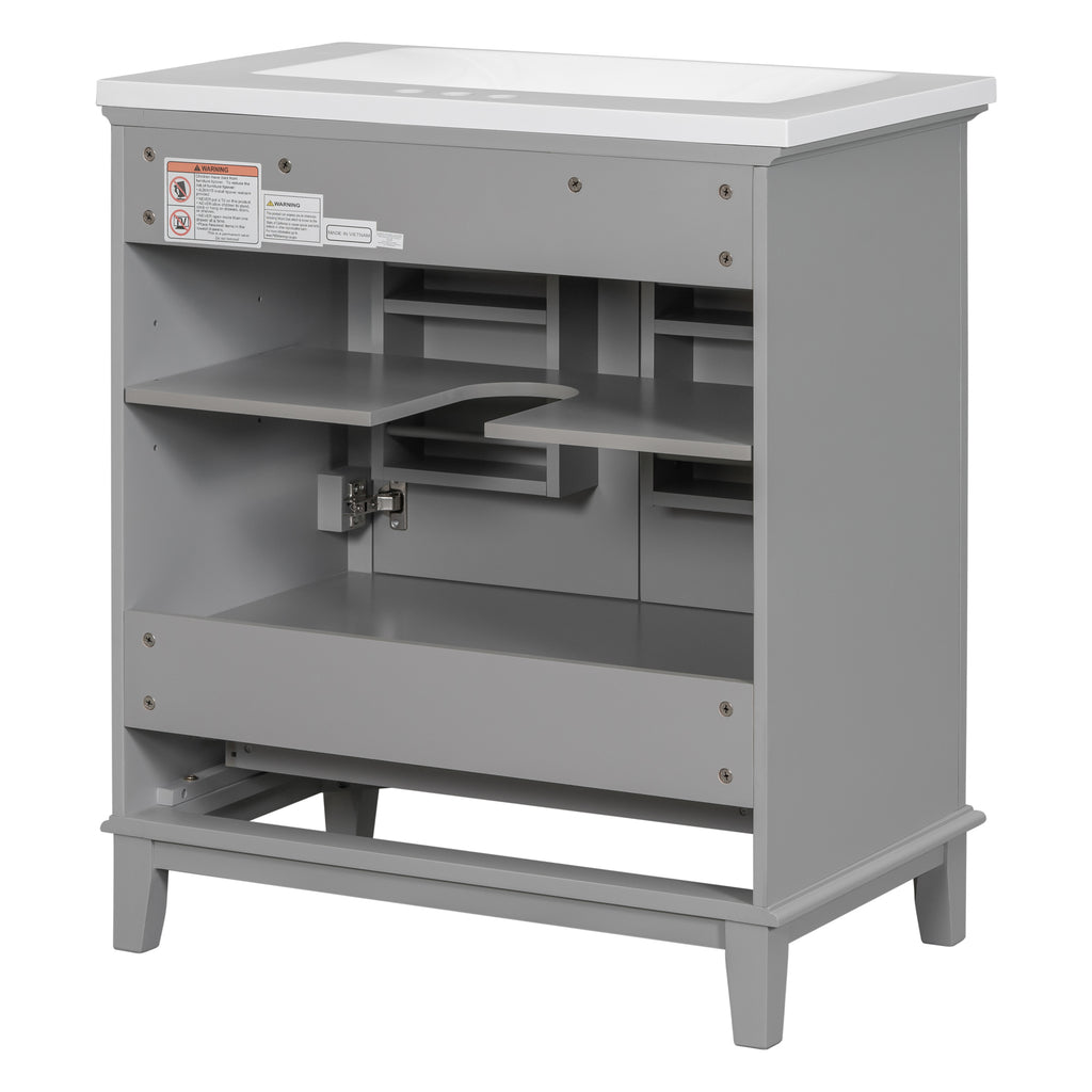 - Assembly Required: This bathroom vanity needs assembly. All the hardware(screws, metal door hinges and handles, drawer slides, anti-toppling device etc.) and instruction manual are provided. You can install it according to the instruction easily.
