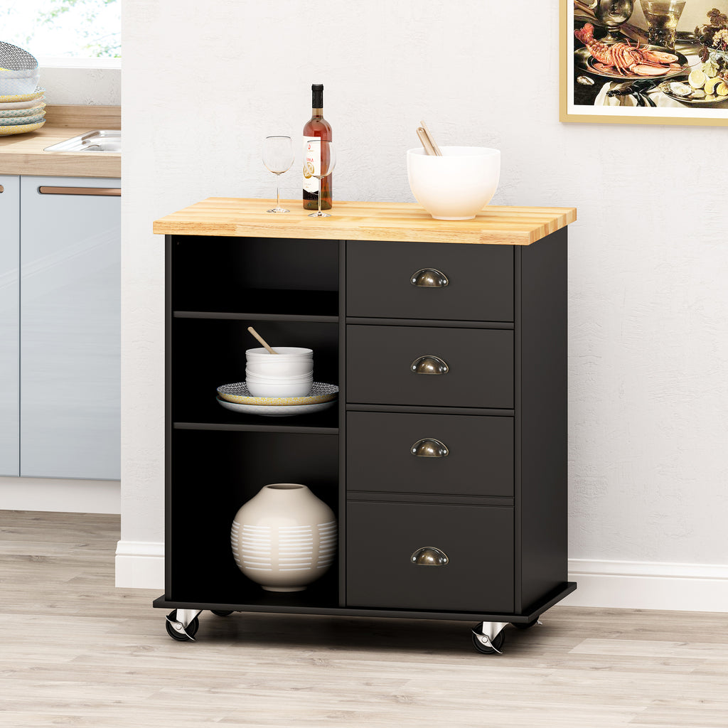- MULTI-FUNCTIONAL: Our kitchen cart offers two drawers, cabinet space, and three shelves for storing your items. This cart is also finished with rolling casters with locks that make it effortless to transport.