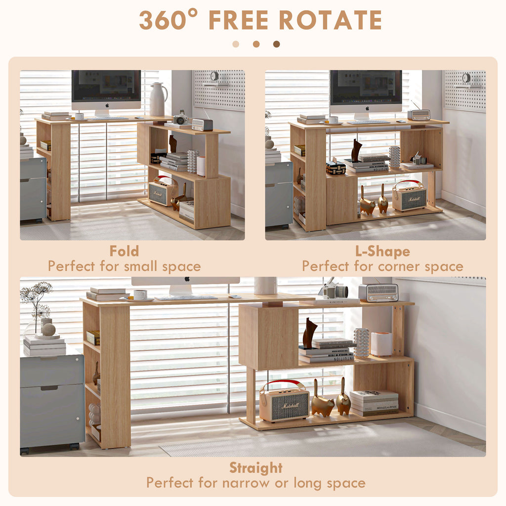 - 360 DEGREE ROTATING DESIGN: Both the desk and the shelf rotate into an L-shape or straight shaped design and are adjustable to meet different needs and locations.
