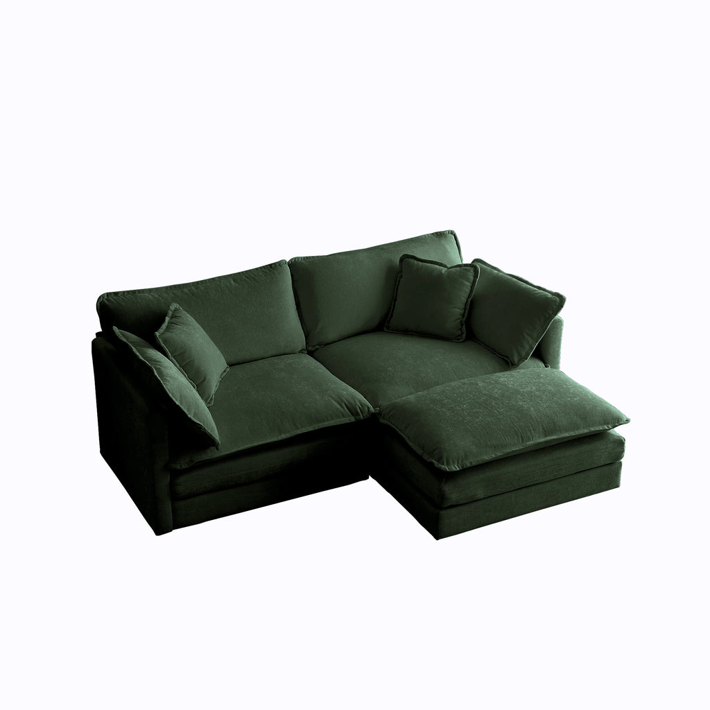 - Superior comfort - Upholstered in high-end breathable Chenille fabric and high-quality sponge, with cushioned thick foam at backrest and seat for prime relaxation. Lean back and stretch out your legs out long on the ottomans when you or guests need more space. Customize the placement of the five pillows anywhere you would like to add extra support when sitting after a long day or watching a movie.