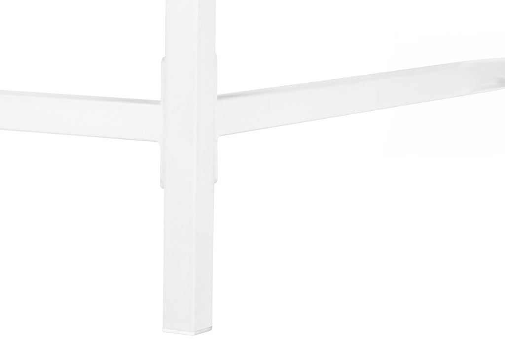 - Metal base in a white finish provides stability and includes slender metal legs that are recessed under the rectangular desktop