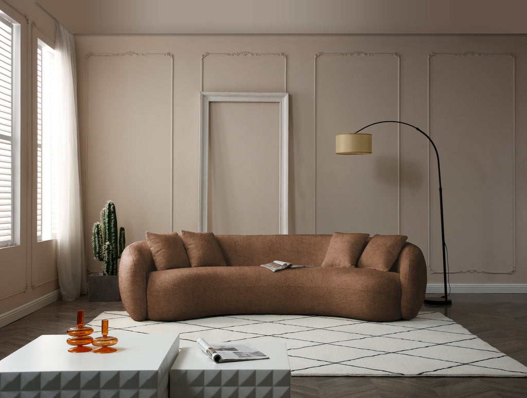 Built to Last Boucle Curved Sofa:The modern couch is covered in high-resilience Boucle Fabric which is breathable and soft making the sofa more comfortable to touch. The solid wood frame is firm enough to support most people.