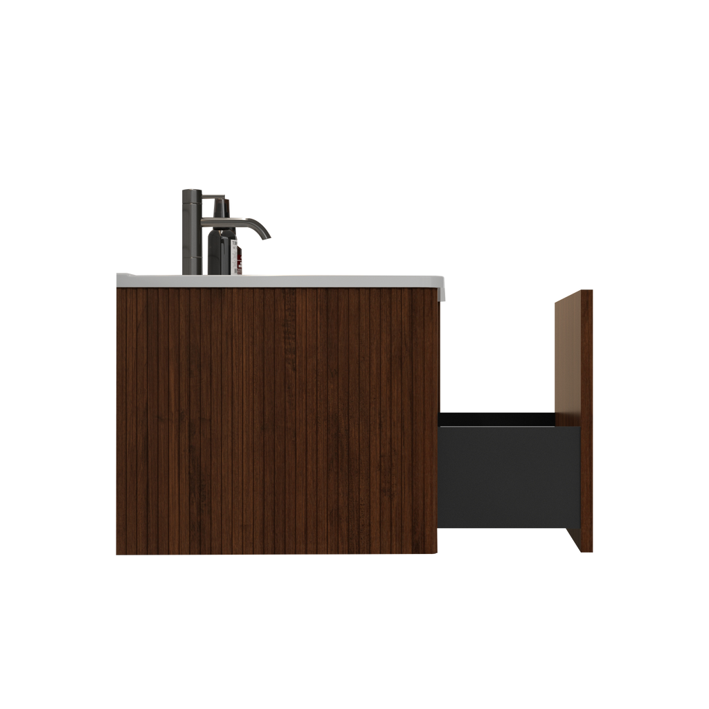 Fashionable Striped Walnut Texture Look: Etna boasts a trendy striped walnut texture finish, adding a touch of sophistication to your bathroom decor. The rich wood grain pattern elevates the vanity's aesthetic, making it a standout piece in any bathroom setting.