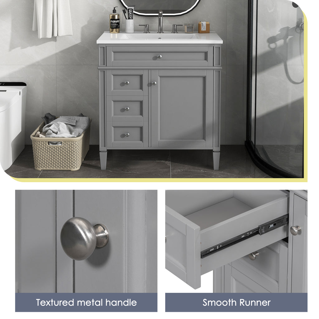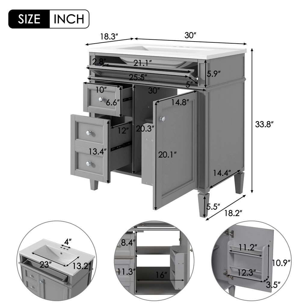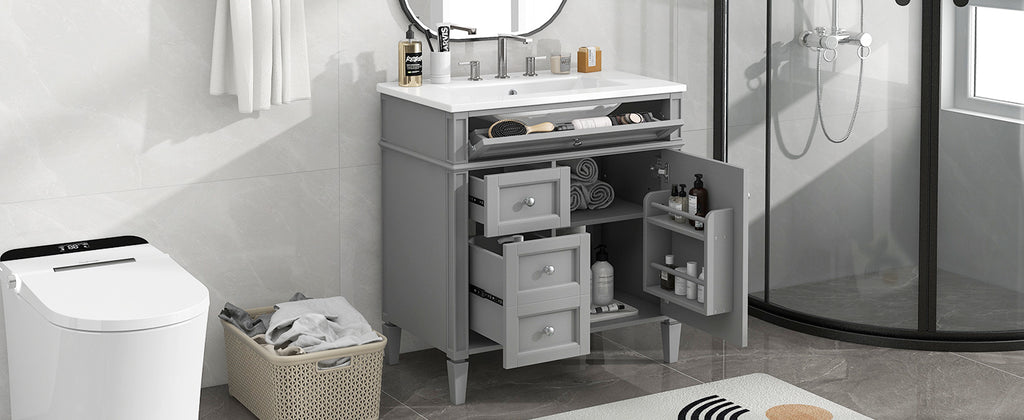 - [ Multi-Purpose Cabinet & Concealed Storage ] Are you looking for stylish and functional storage solutions for your bathroom? Our bathroom vanity provide ample space for all your toiletries and bathroom essentials. The combination of the cabinet body and the drawer perfectly stores all kinds of bathroom products and keeps the necessities away from water stains and dust. Soft-close doors and drawer fronts feature a water-resistant paint finish for durability.