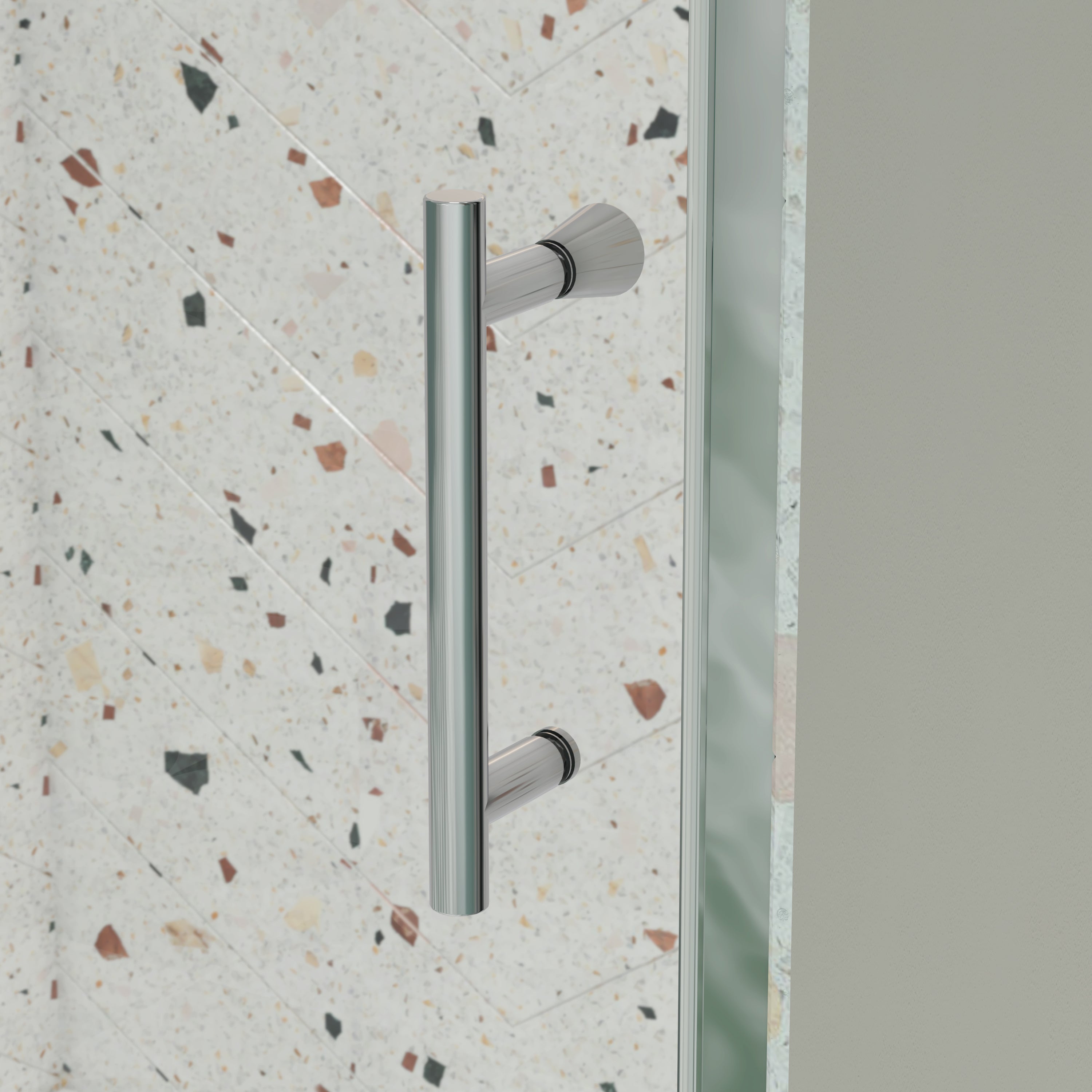 - The shower door has stainless steel handle and hardware.