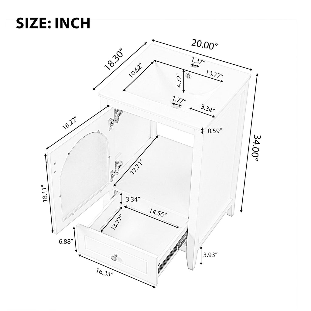 - Ceramic Sink - The white ceramic sink with basin is equipped with an integrated overflow and one hole for faucet mount. It is very easy to clean that you can keep it smooth and shinning effortlessly. Single hole faucet will fit this sink (not included).
