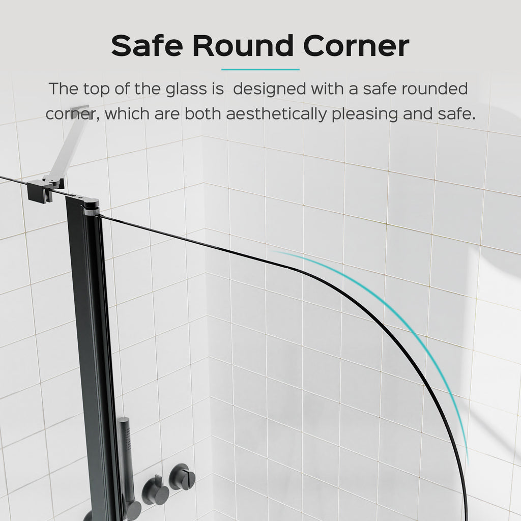 - FRAMELESS PIVOTING SYSTEM: This shower tub door is installed to the wall,it has a fixed glass and a movable glass, the movable glass panel itself can be rotated 90 degrees inside and out and allows a wide range of access without taking up too much space. As well as, this bathtub door can be installed with left side opening or right side opening based on customer's preferenceflexible and comfortable.