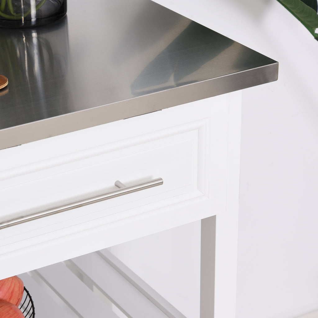 - Add Style to Your Home: This 3-tier rolling kitchen island is built in a rustic farmhouse style with beautiful white pine and engineered wood, a stylish stainless steel top, 4 smooth casters, and ample storage and shelving.