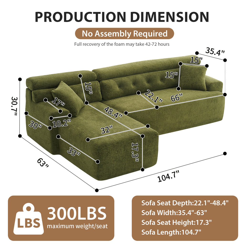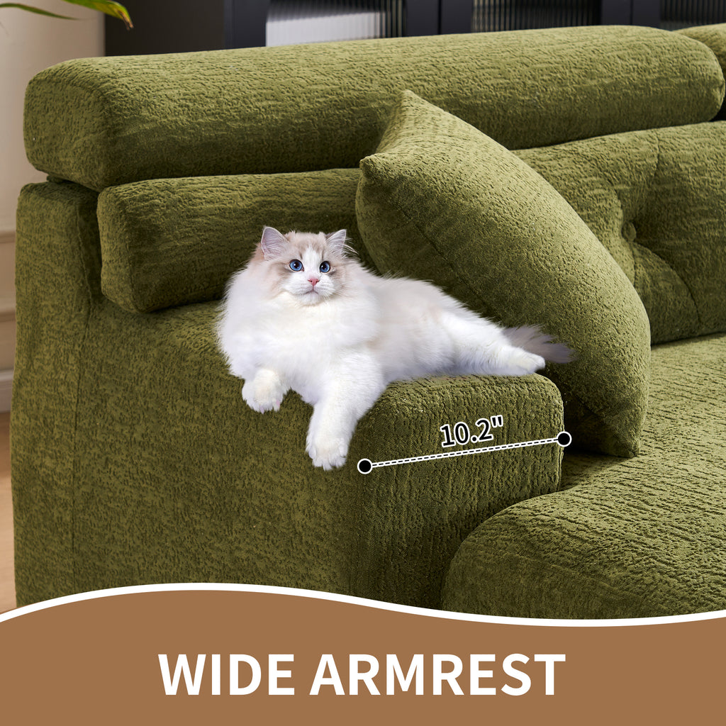 - Compression Sofa with wider armrests, deeper seat depth, and raised backrest provide a more comfortable seating experience. The 2 small pillows included for free can be cradled in your arms or leaned against your back, allowing you and your family to relax even more. The super wide sofa gives every part of your body plenty of space to relax.