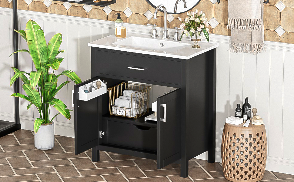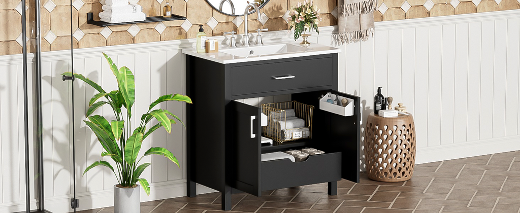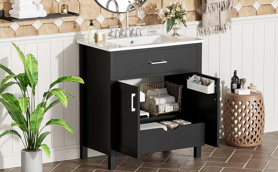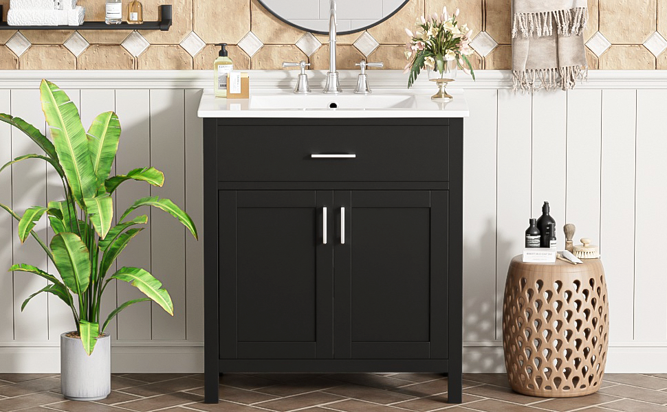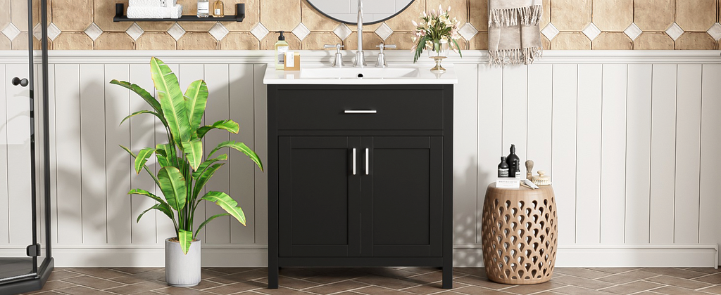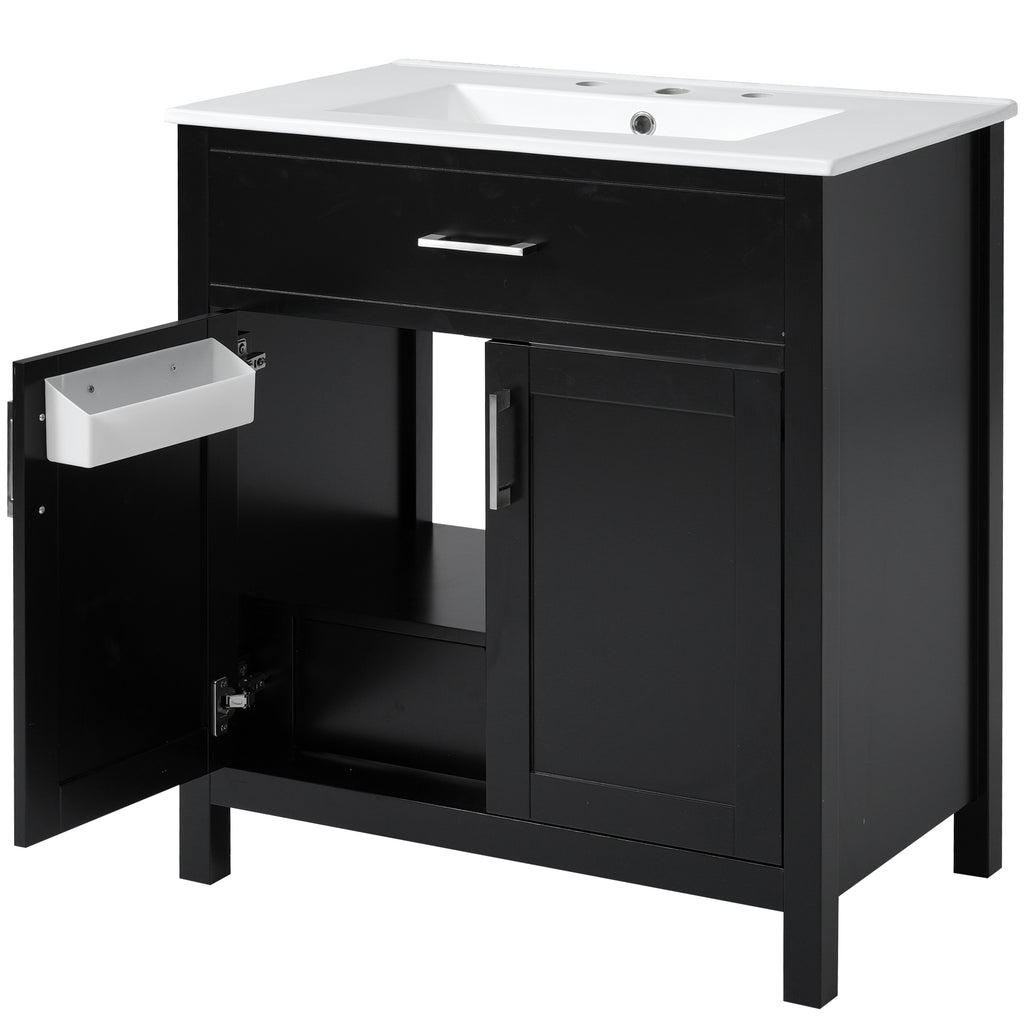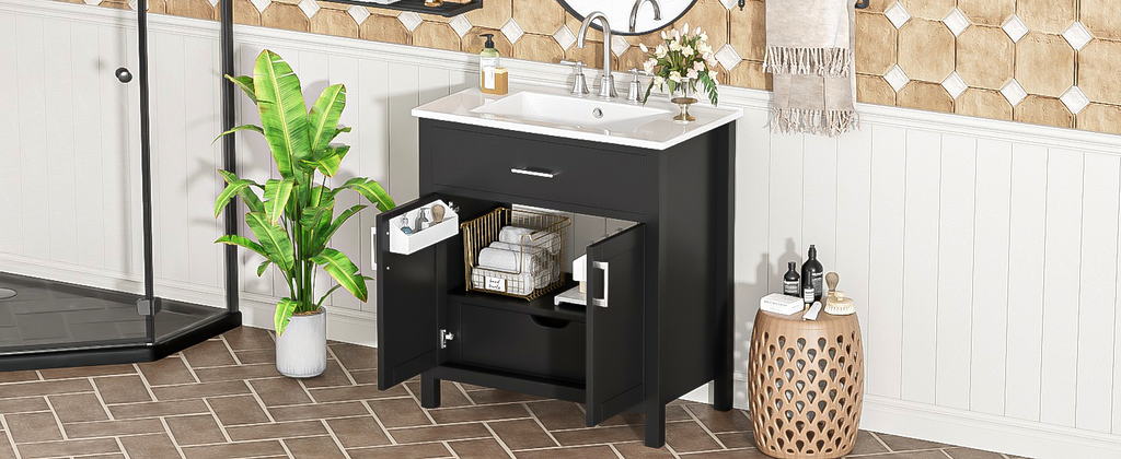 30-Inch Sophisticated Black Bathroom Vanity with Ceramic Sink and Ample Storage