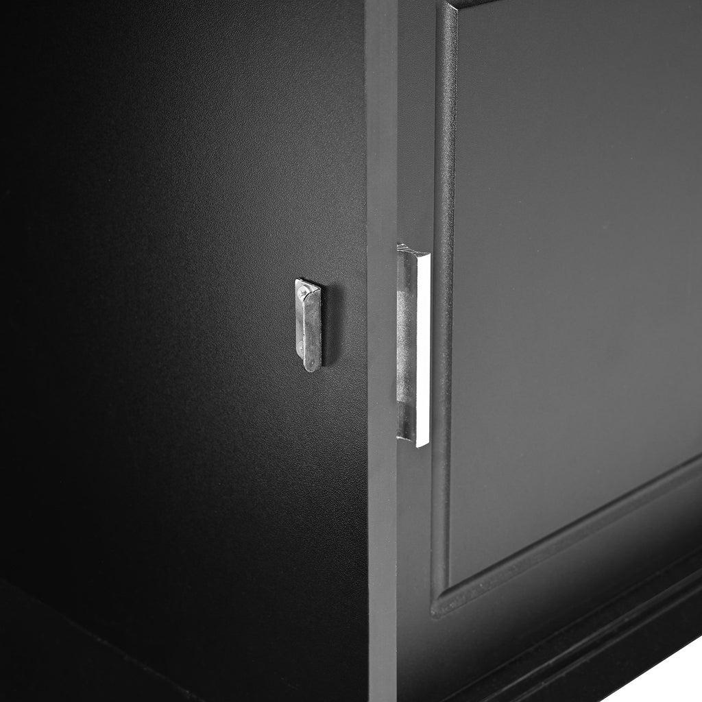 The sliding door panels provide convenient access to stored items while optimizing space by using less area than regular outswinging cabinet doors. Furthermore, the cabinet features two large compartments, which boosts storage capabilities without detracting from its elegant appearance.