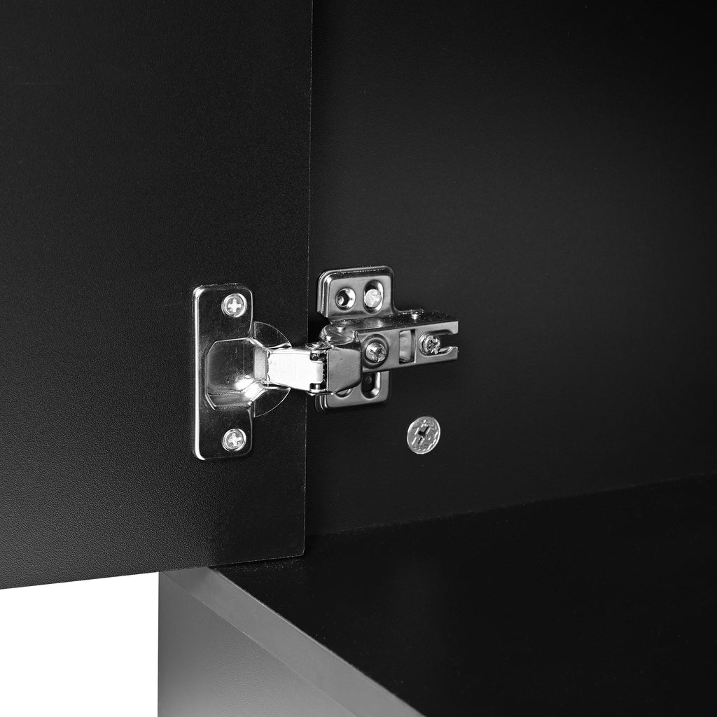 - The sliding door panels provide convenient access to stored items while optimizing space by using less area than regular outswinging cabinet doors. Furthermore, the cabinet features two large compartments, which boosts storage capabilities without detracting from its elegant appearance.