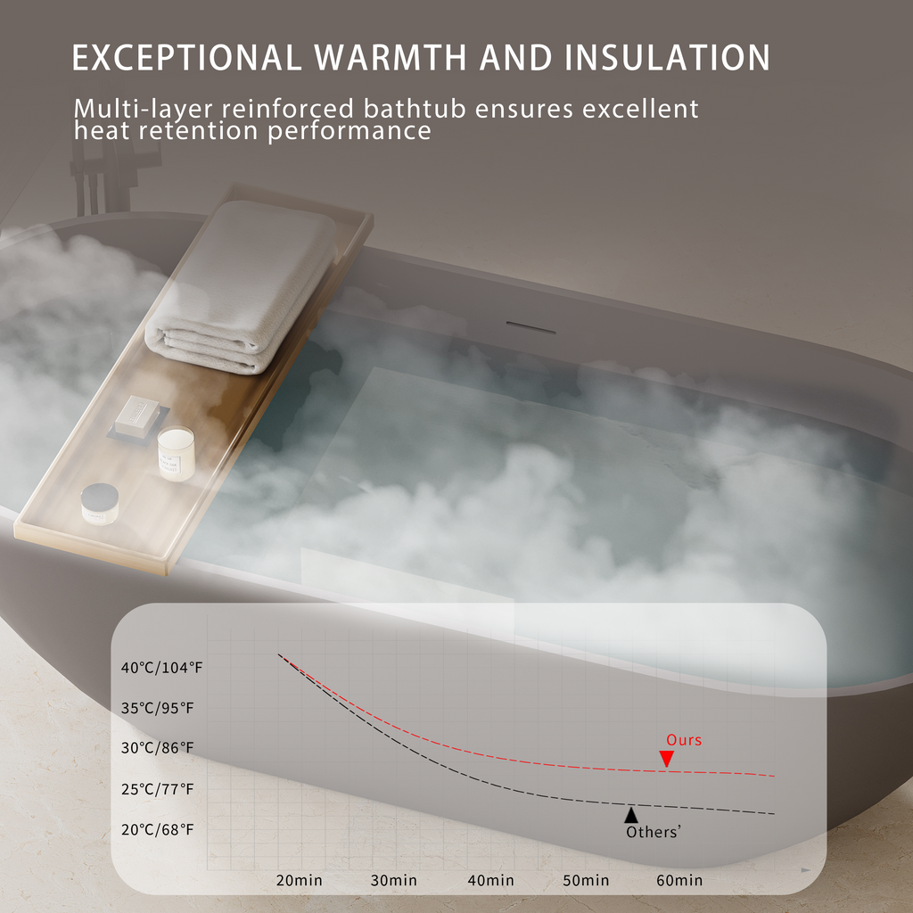 - Easy Installation: Designed as a freestanding bathtub, it can be easily installed in any bathroom location without the need for complicated installation procedures.