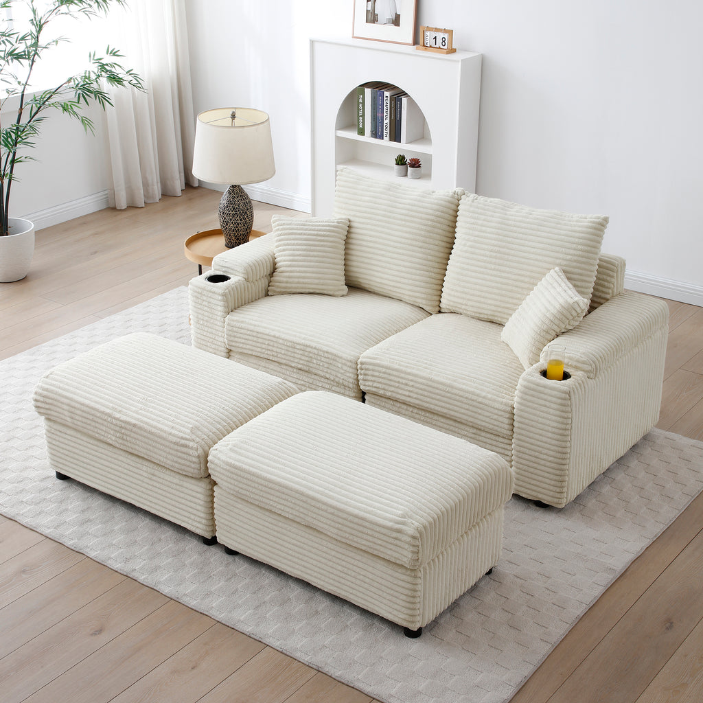 - [Soft Corduroy]:Upholstered with soft corduroy in a neutral hue, this set will provide an inviting and cozy feel to your home. This sofa set uses high-quality corduroy fabric, which is soft and comfortable to the touch. The classic and fashionable design will add elegance and taste to your living room decor