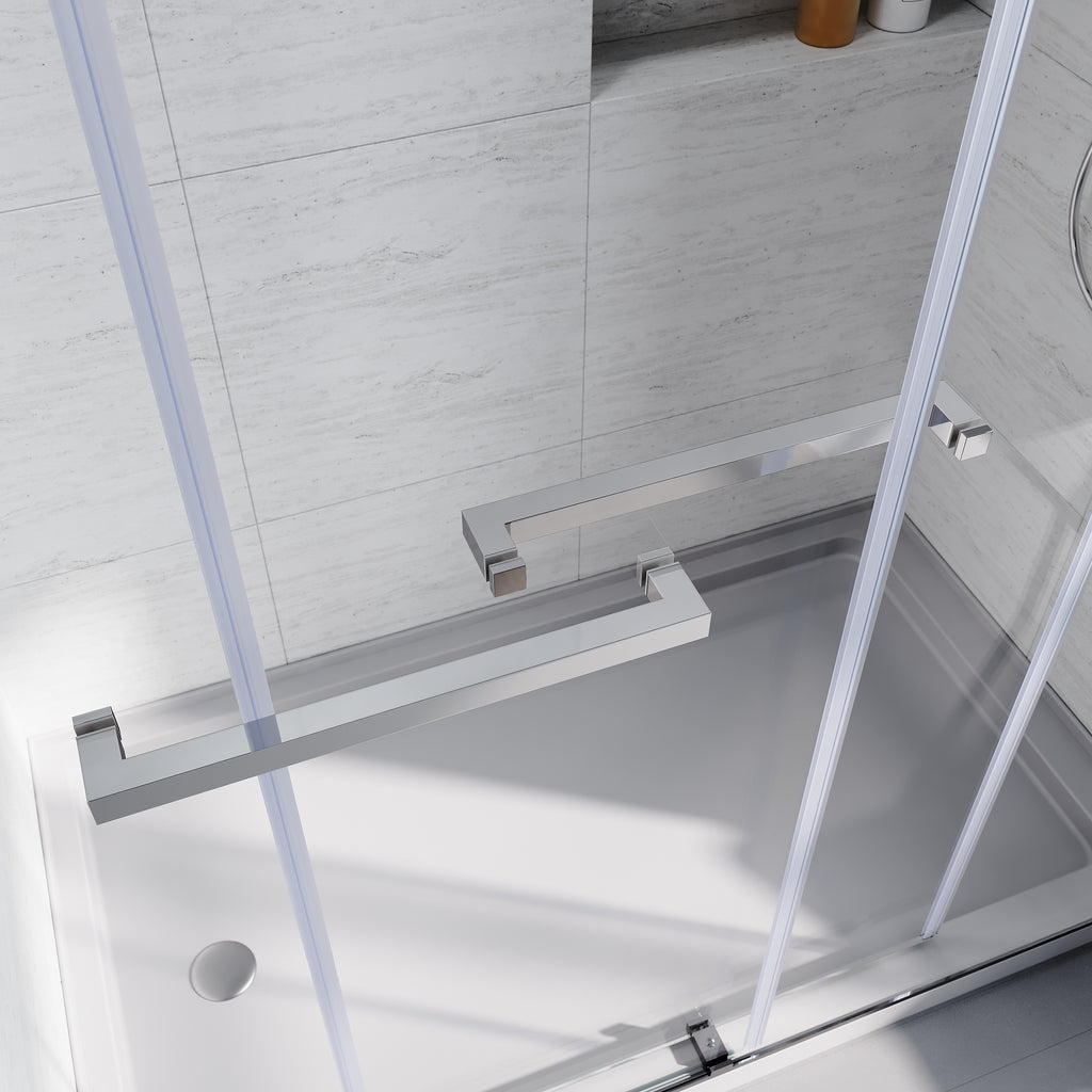 - Security Transparent Glass Door: ANSI Z97 certification & premium 3/8 in (10mm) thick tempered glass;High quality NANO Coated Technology apply on glass surfaces,repel contaminates,such as hard water build-up,water spots,soap scum and limescale.