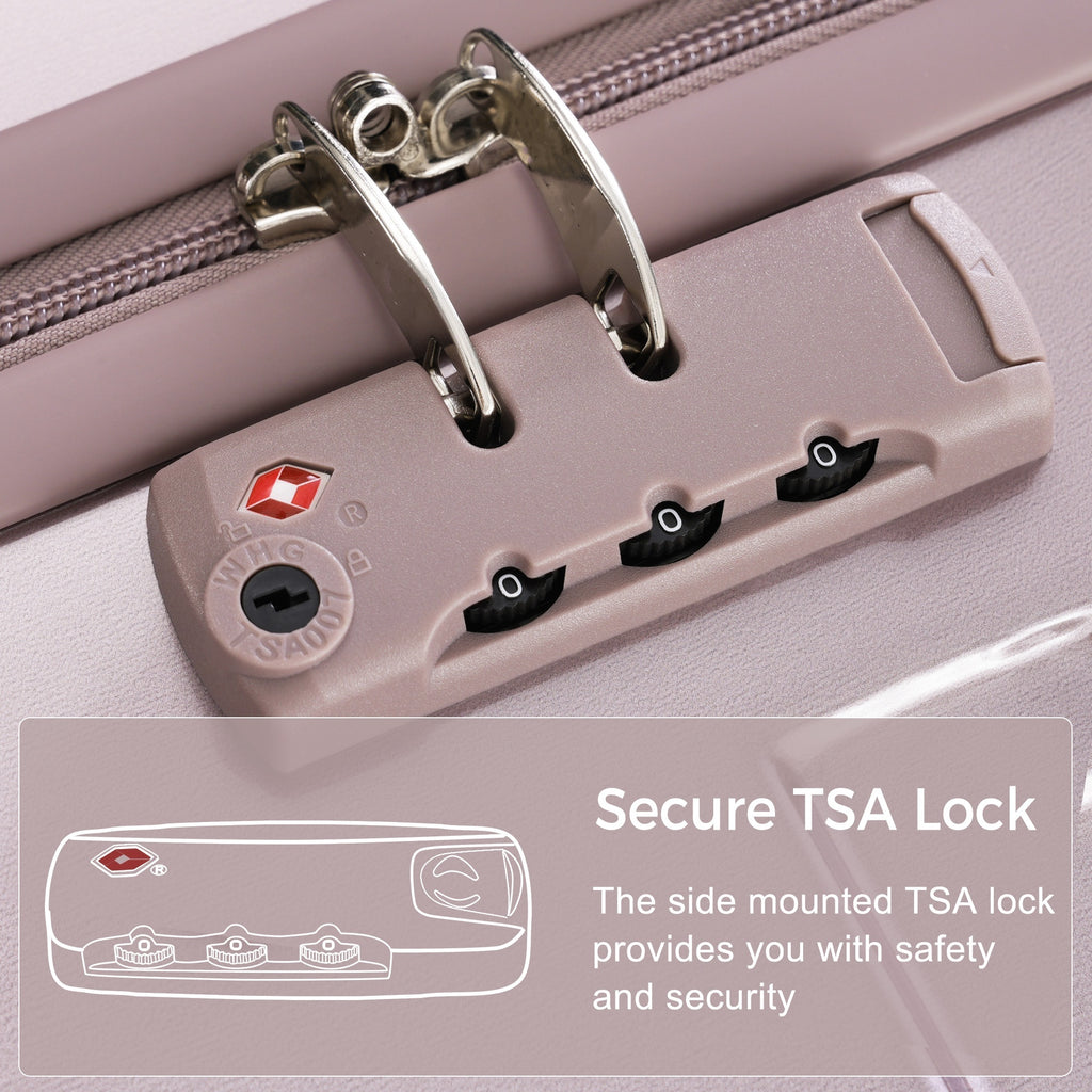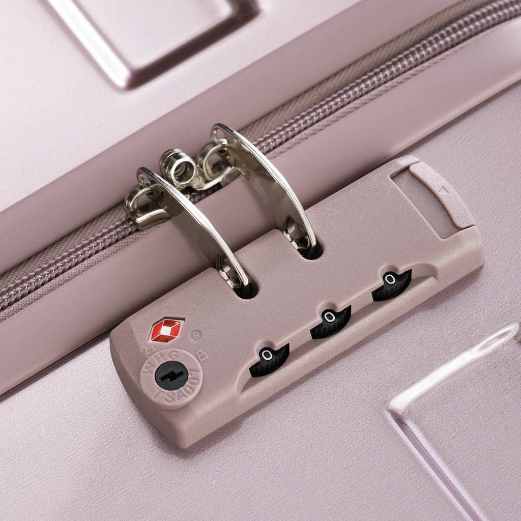- Secure TSA Lock - Side of the suitcase-mounted TSA lock, which allows only TSA agents to inspect your luggage sets clearance without damaging the lock when traveling.