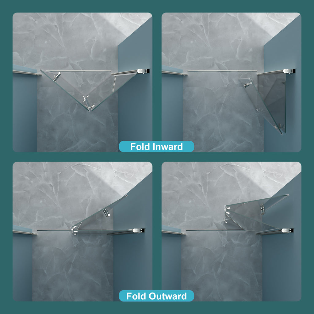 - Flexible installation: Designed for flexible installation, our frameless glass shower door offers reversible options for both right- and left-hand door opening, tailored to your specific layout. The hinges and shaft feature a 180° overlapping rotate angle for efficient space-saving.
