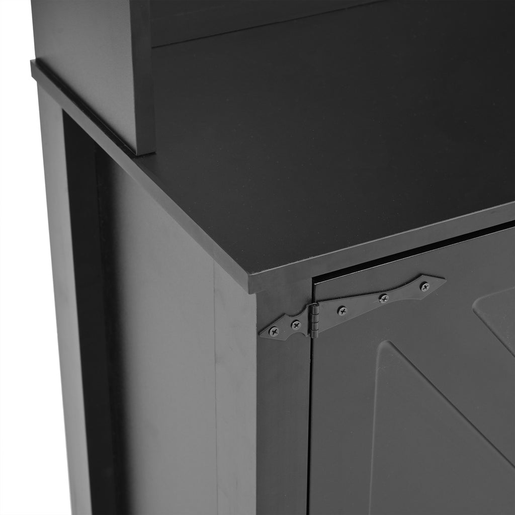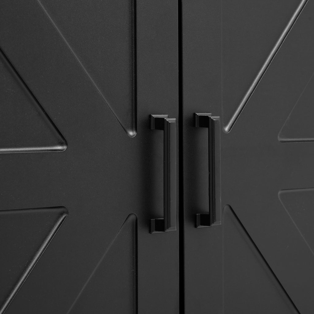 Adorned with classic retro black handles, hinges and hooks, this hall tree exudes a rustic charm. The gracefully curved boards and two delicate barn doors further elevate the aesthetic of your hall tree, making it suitable to any farmhouse-inspired decor in your home.