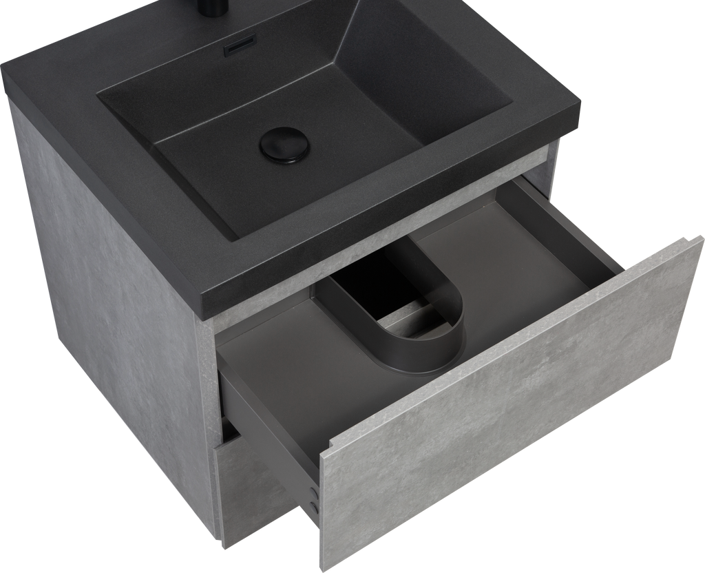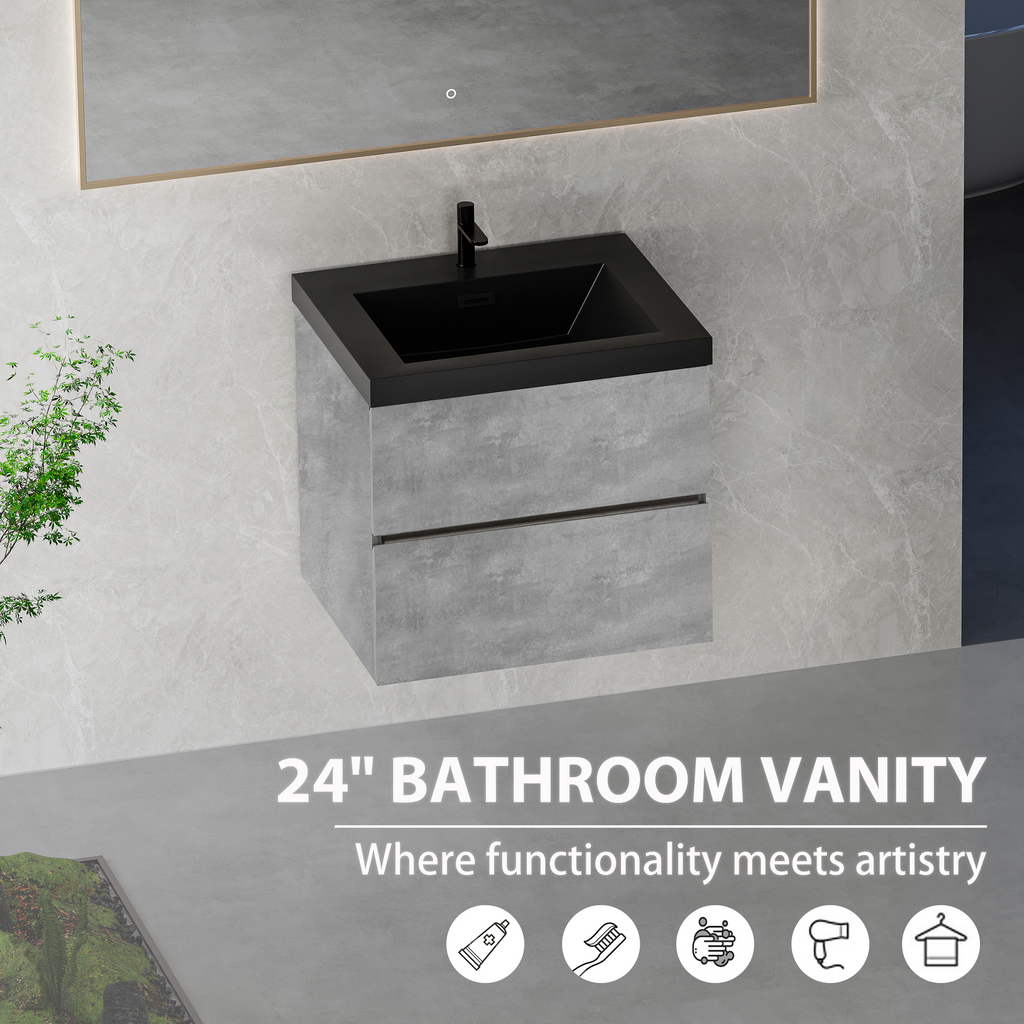 - Clean and Functional: Enhance your bathroom with this space-saving, wall-mounted vanity featuring a gray storage cabinet to neatly organize cosmetics and other essentials. Its modern, minimalist design enhances the aesthetics of your space while maximizing functionality.