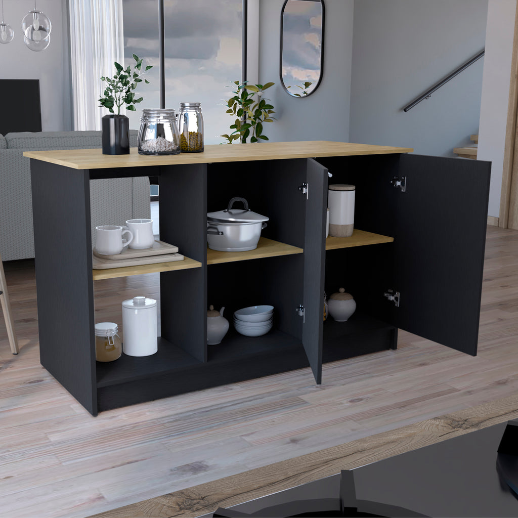 - Double-door cabinet with two spacious inner shelves for storing pots and pans.