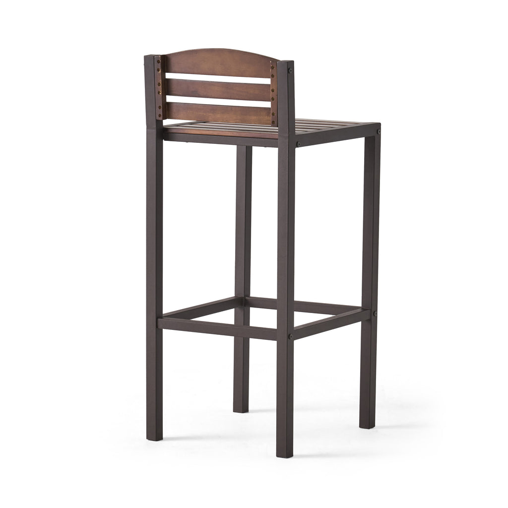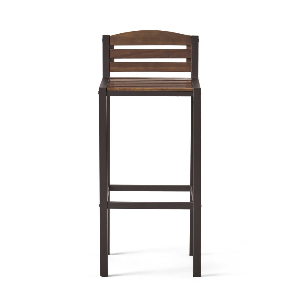 Expand your bar area with seating of substantial design and impressive style. Our set of barstools is the perfect addition, effortlessly transforming your space with edgy modern industrial aesthetics. Composed of rich acacia wood and powder-coated metal frames, our stools will complement any bar or dining set up, bringing an understated flair to even the most unassuming home. These are finished with classic slat paneling that strikes a perfect balance of classic charm and modern sophistication for all to admire.