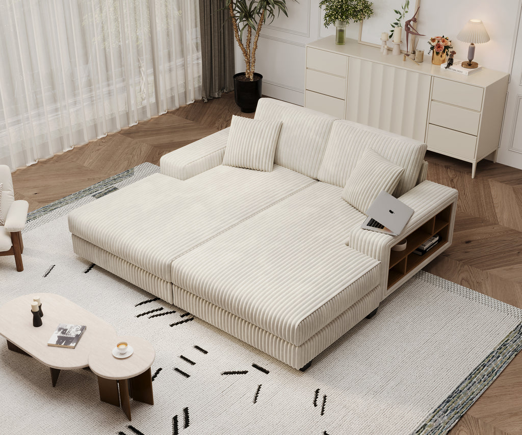 - BUILT TO LAST: Featuring a simple and elegant design, this sectional sofa boasts meticulous stitching details, durable fabric, and a solid wood frame, ensuring structural stability and exceptional quality. The high-density foam padding and pocketed coil spring system in the cushions deliver an unparalleled sitting experience