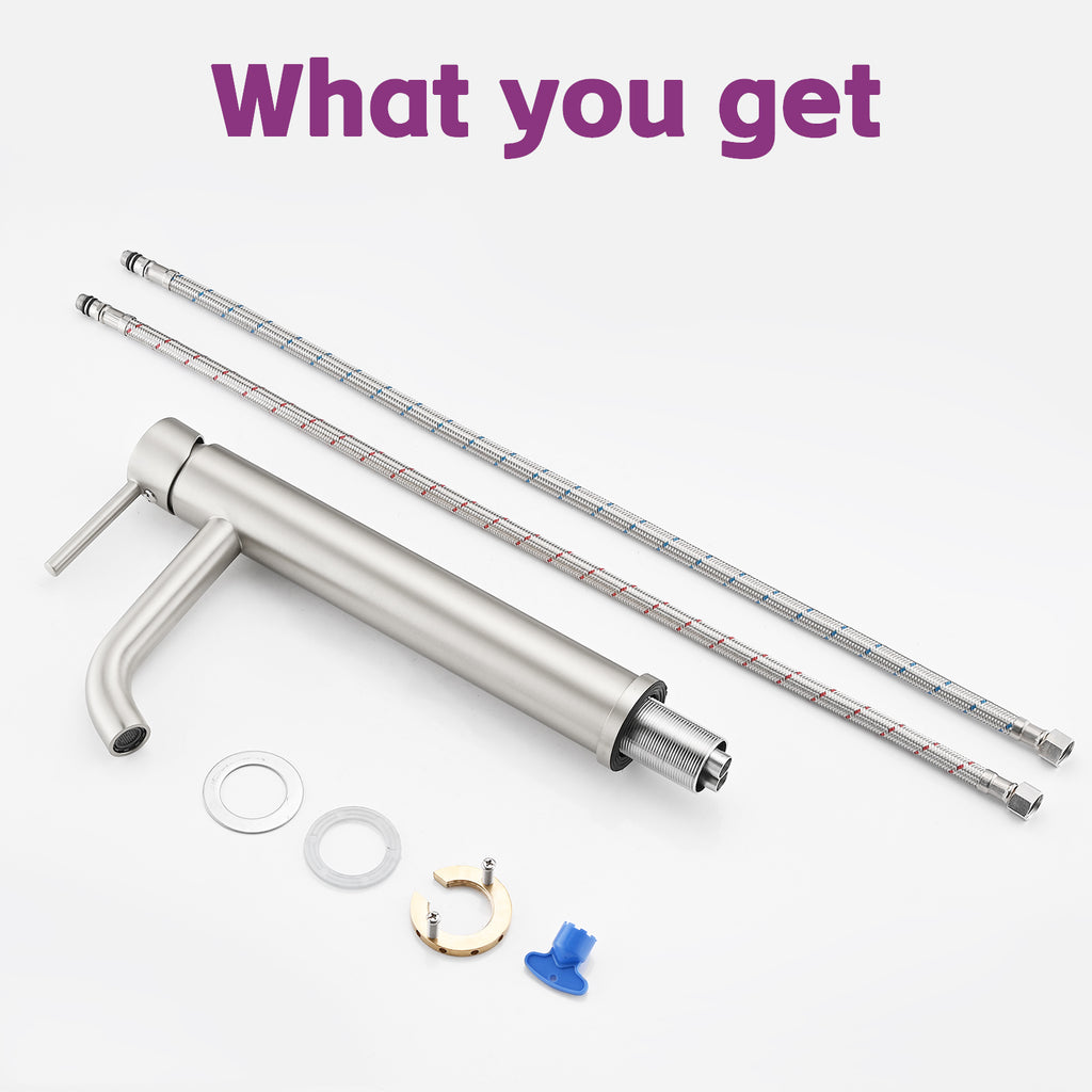 - Tall Vessel Sink Faucet: Vessel faucet using high-lever processing technology, can match most bathroom sink.High water outlet in bathroom faucet vessel can be realised your different needs from others. vessel sink faucet make you look more atmospheric and more convenient to use.