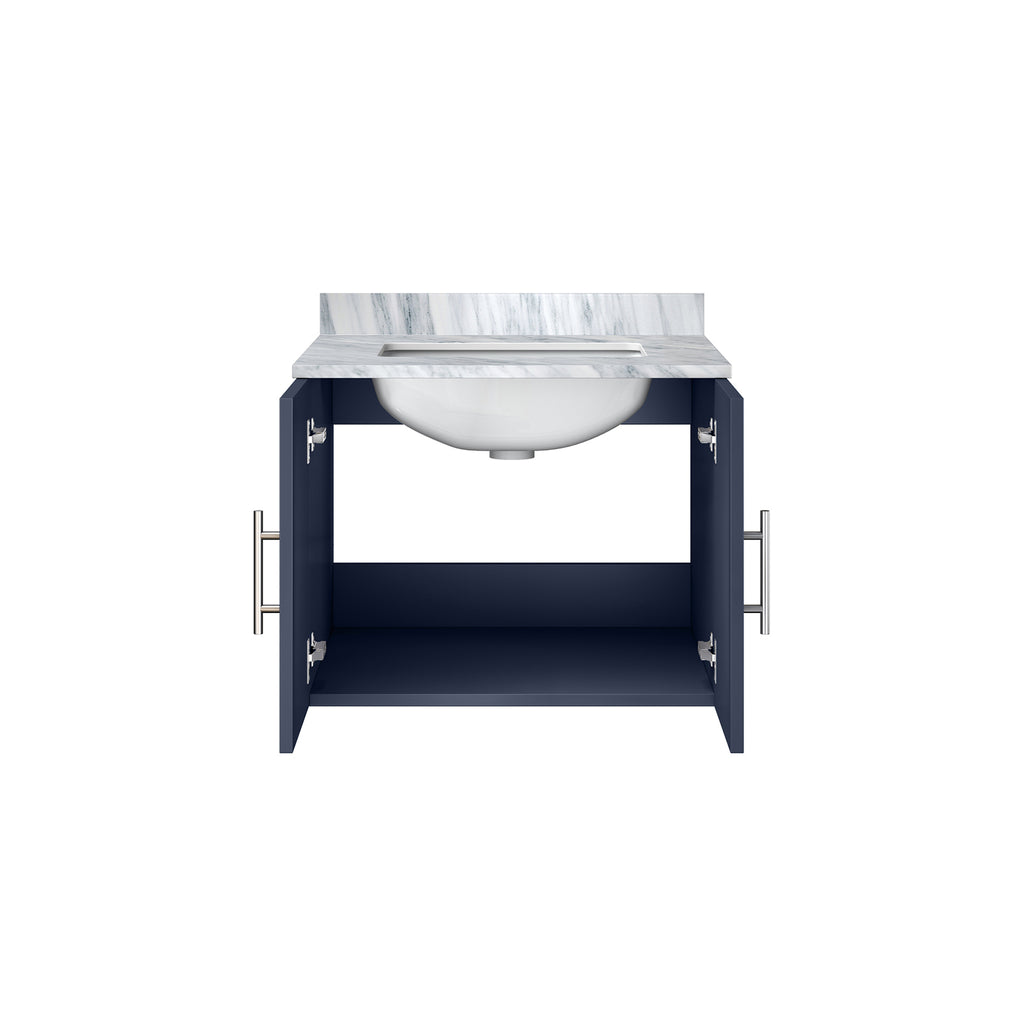 - Vanity countertop is pre-drilled for a single-hole faucet for easy installation
