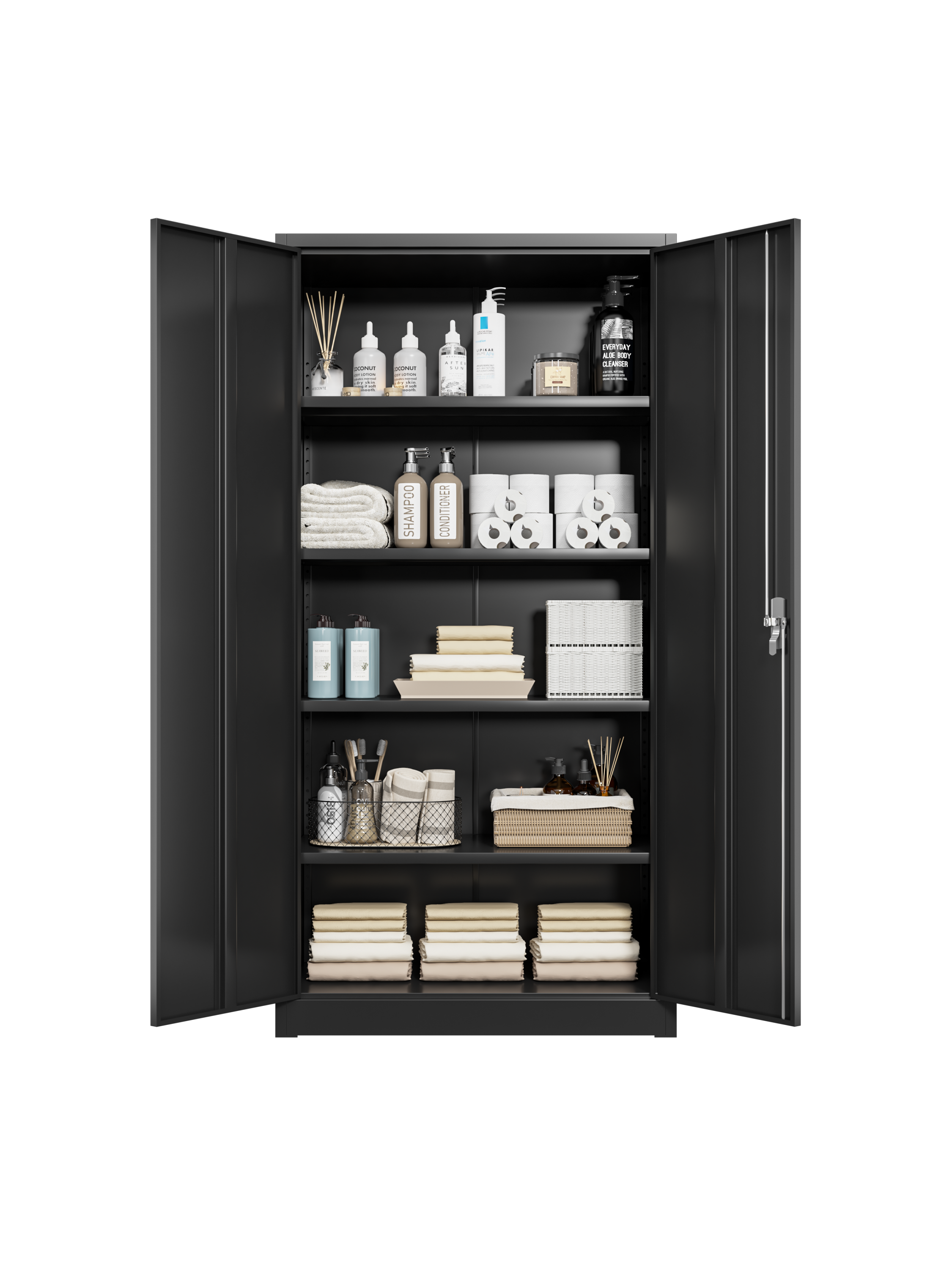 - Black tall cabinets is knock-down structure requires assembly. Metal outdoor storage cabinet comes with installation instructions and videos to help you complete the installation faster. If you have any questions for garage storage shelves cabinet after purchase, we will reply you promptly. Your satisfaction for black garage storage cabinet is our greatest