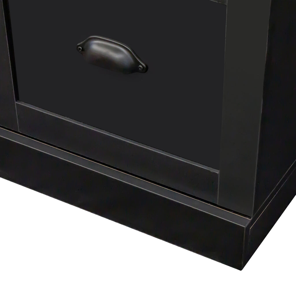 - Constructed of sturdy particleboard, this cabinet is designed to endure daily wear and tear, providing resistance against damage. Furthermore, it features robust anti-tipping devices, which is a vital feature in any living environment.