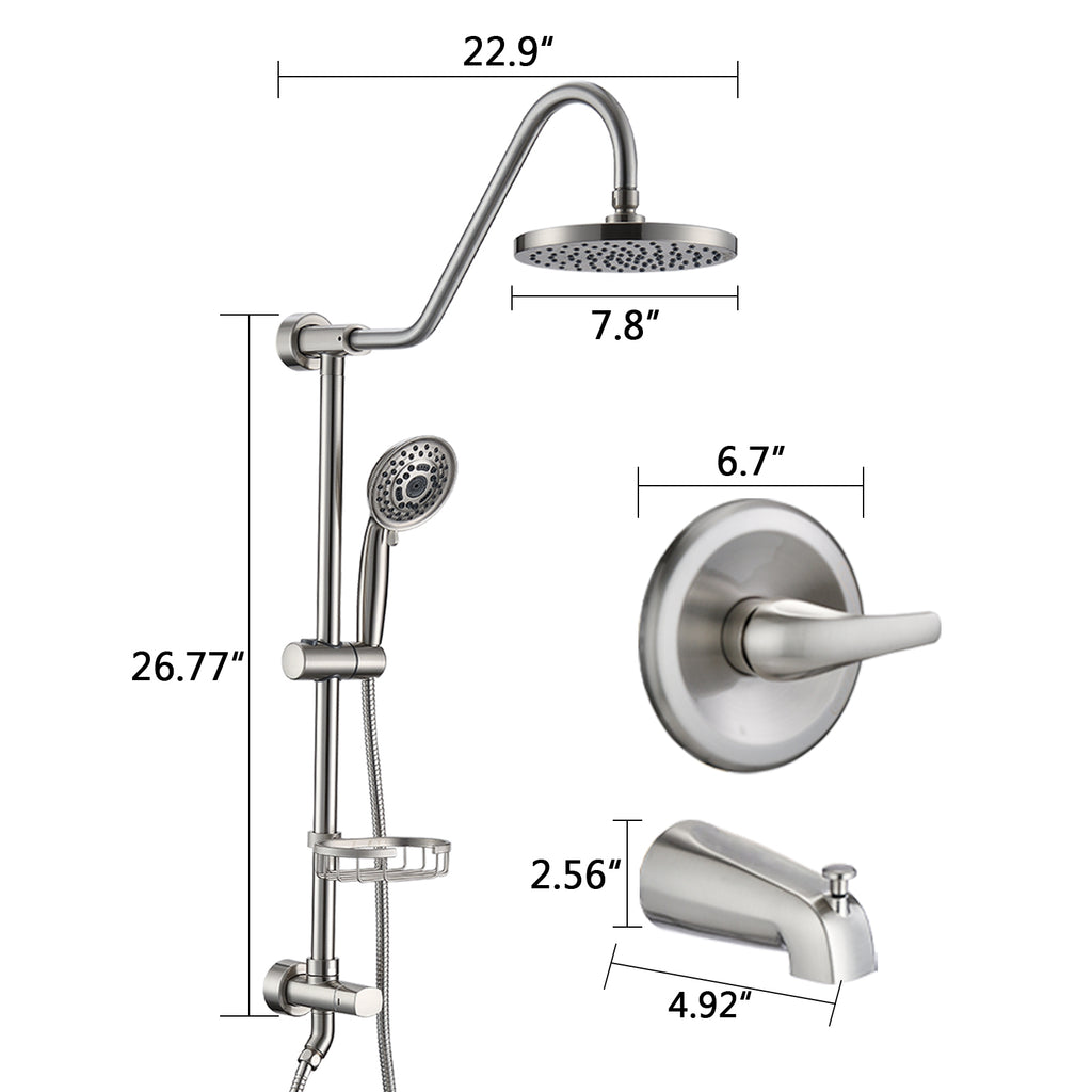 - With 8 inch large rain stainless steel shower head and 5 functions handheld shower, High strength water pressure can make you relieve muscle pain, offer consistent powerful shower even in low water pressure.