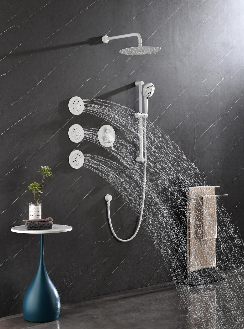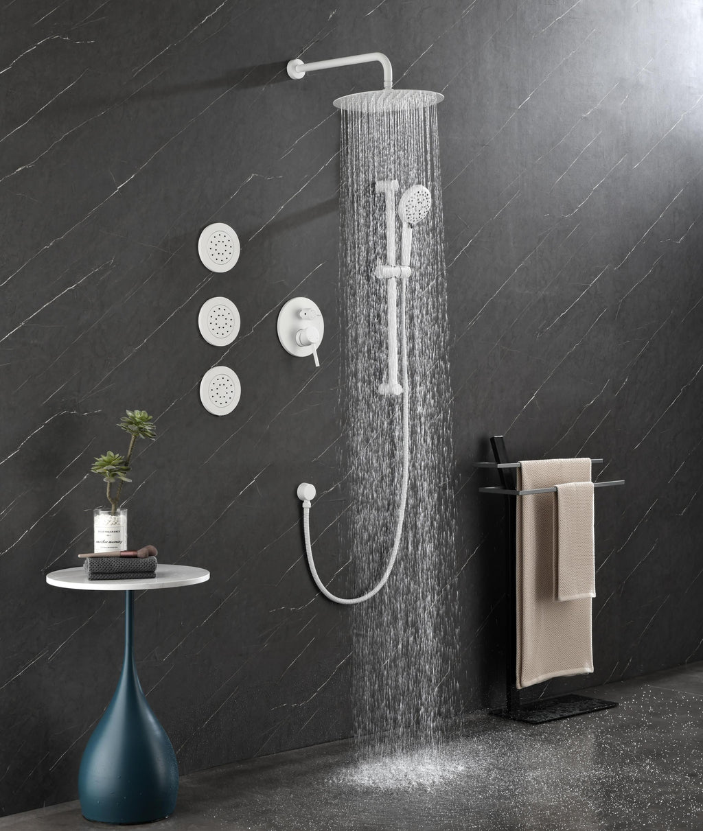 - The shower head simulates natural rainfall and provides you with a natural experience of contact with water.