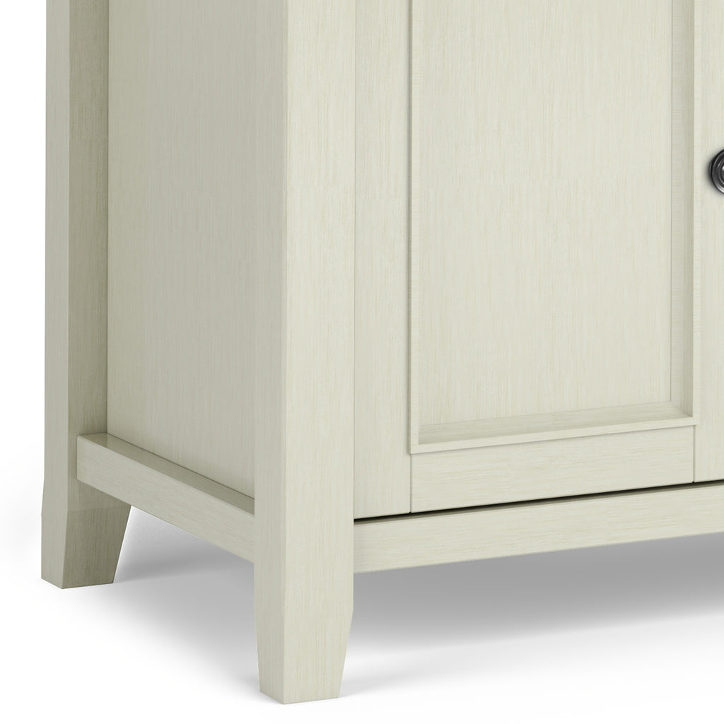 - Transitional design includes tapered legs, panel framed door fronts, and antique bronze round decorative knobs