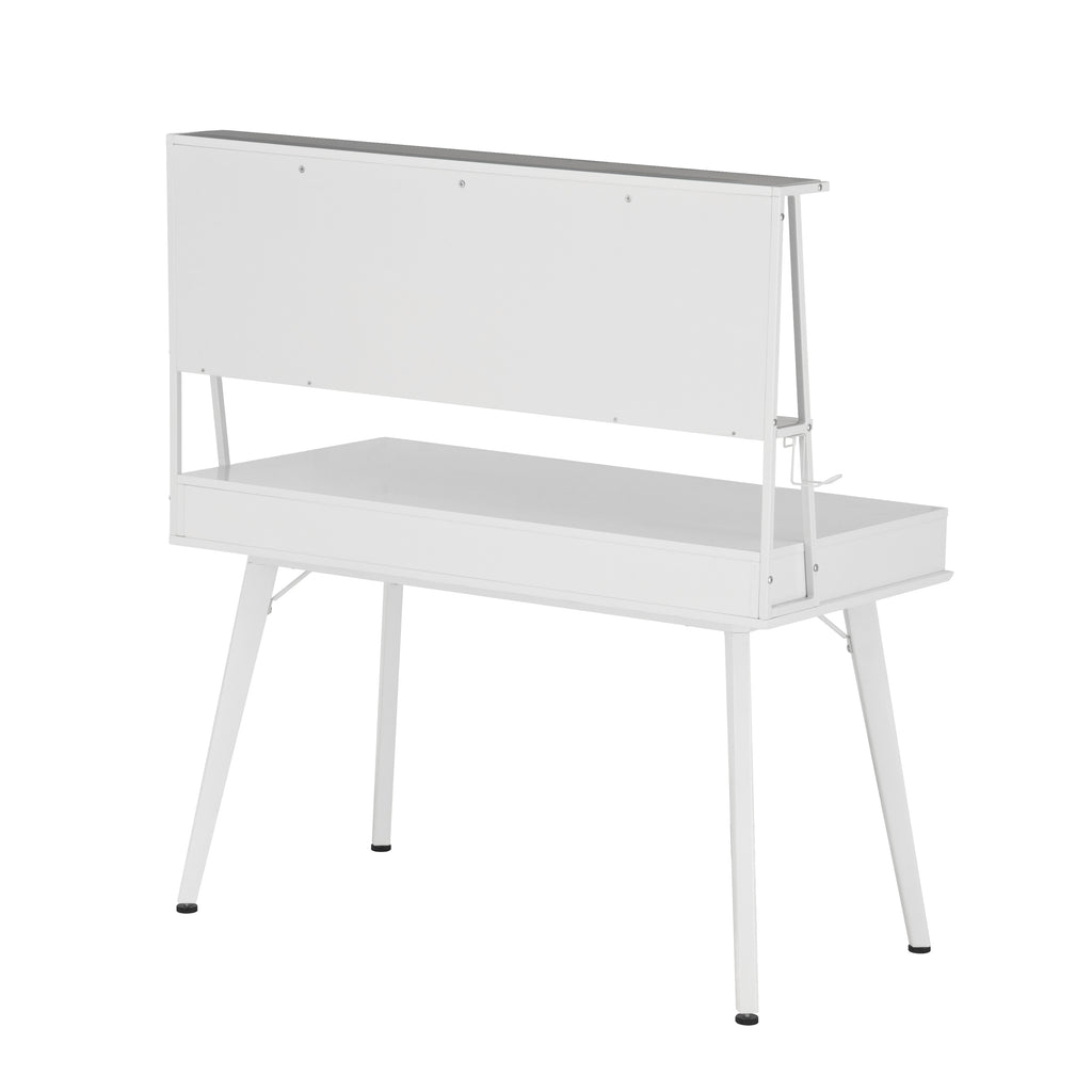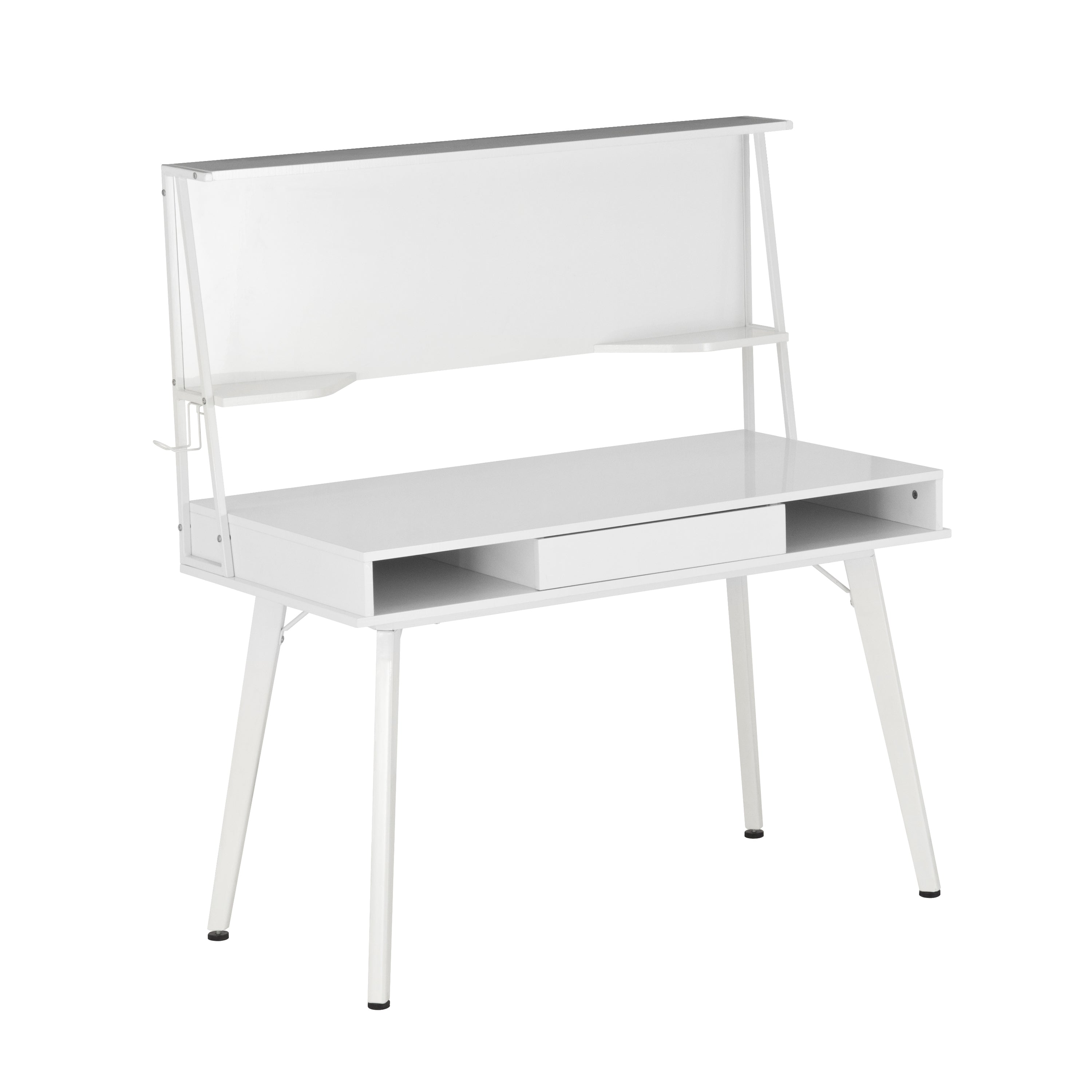 Specially designed to easily accommodate a range of ages, the Techni Mobili Computer Desk with White Magnetic Board is one of the most multi-functional desks in the market. Made with MDF panels, PVC laminated white finish and heavy-duty metal legs, it offers durability with style to fit perfectly within any space. It comes with magnetic dry erase whiteboard that lets you write notes or reminders while working on a project. There is a top-shelf that enables you to organize your accessories, whereas two smaller shelves at the bottom on the left and right side to keep the stationaries within reach. The desk has two open side storage areas and a pull-out drawer that helps in maintaining the documents, stationaries secured.