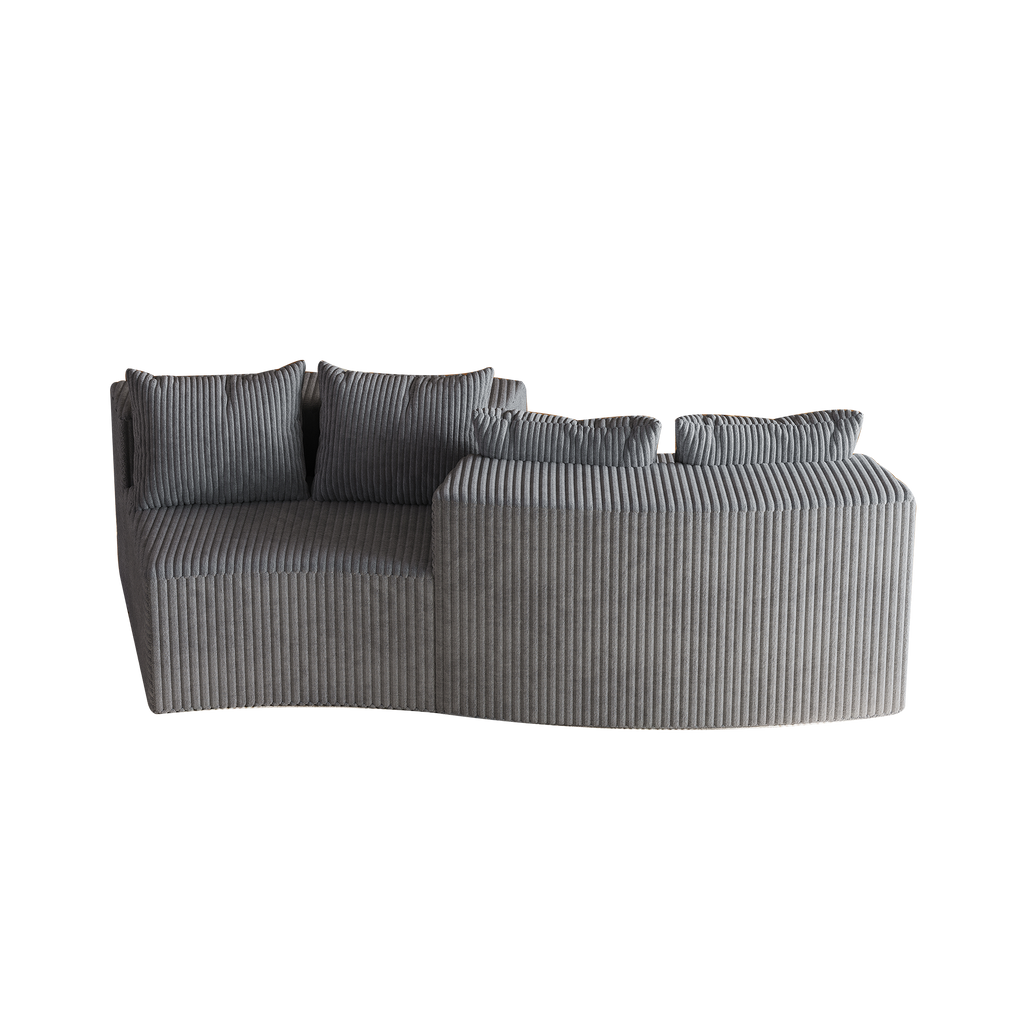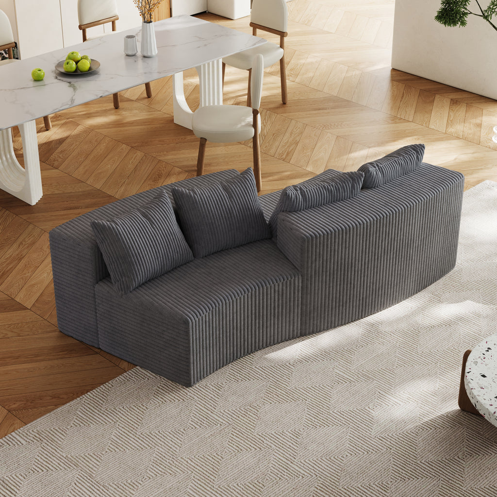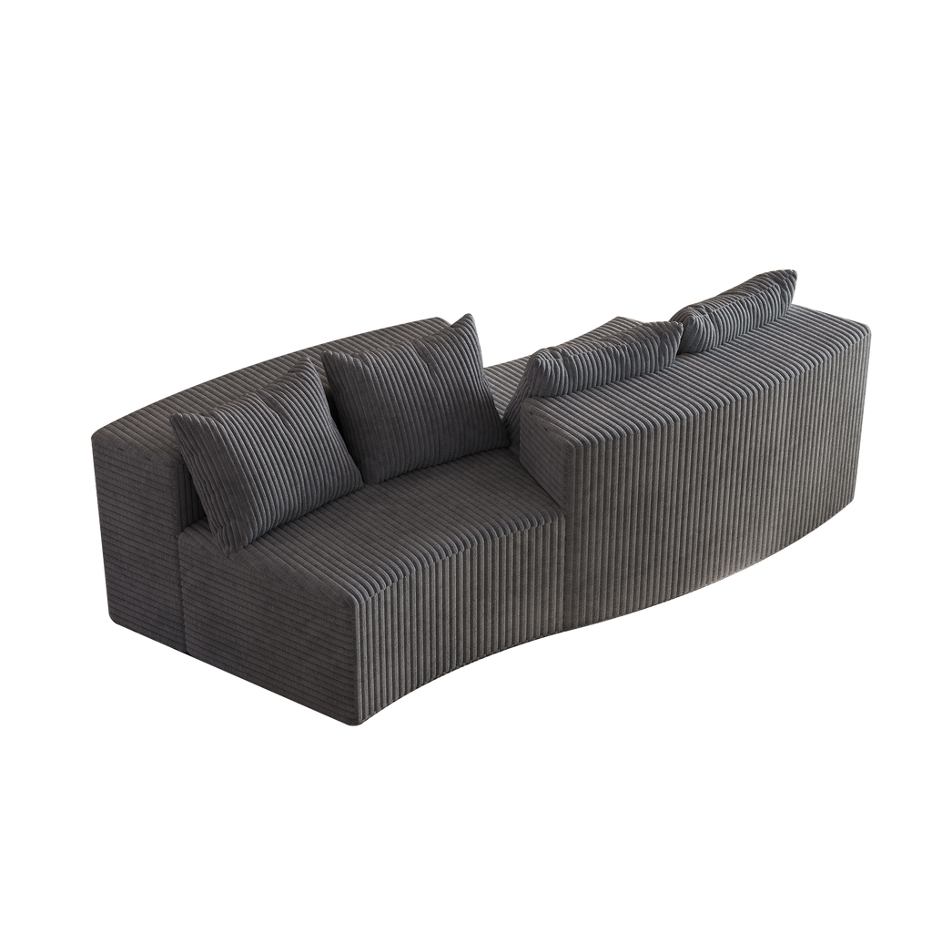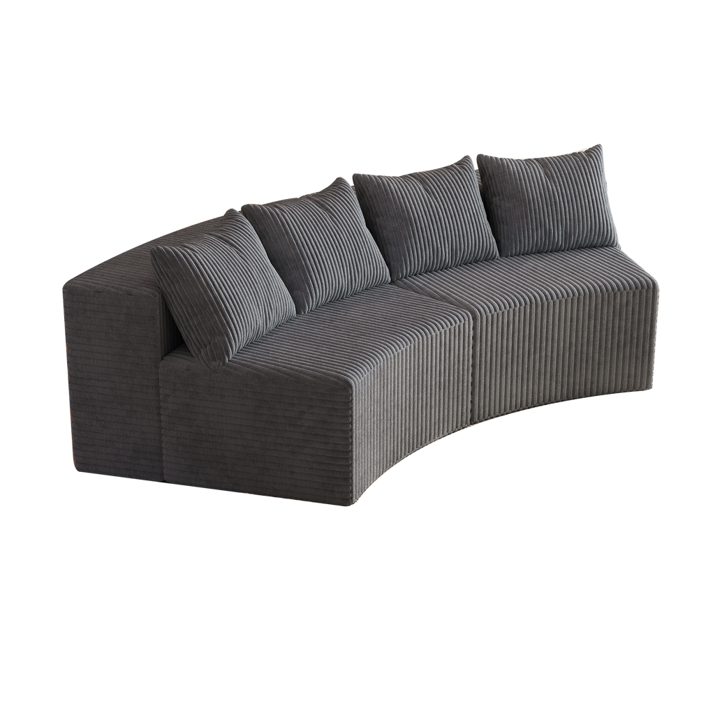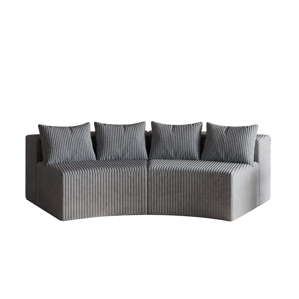 - 【UNIQUE DESIGN】 The curved sofa's unique shape instantly fills your room with a cozy ambiance, featuring beautifully detailed the curves of the armrests, Corduroy fabric, for an elegant look. This comfy couch also comes with 4 pillows for comfortable back support.