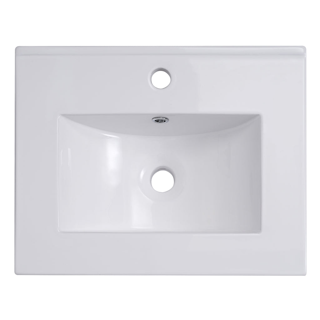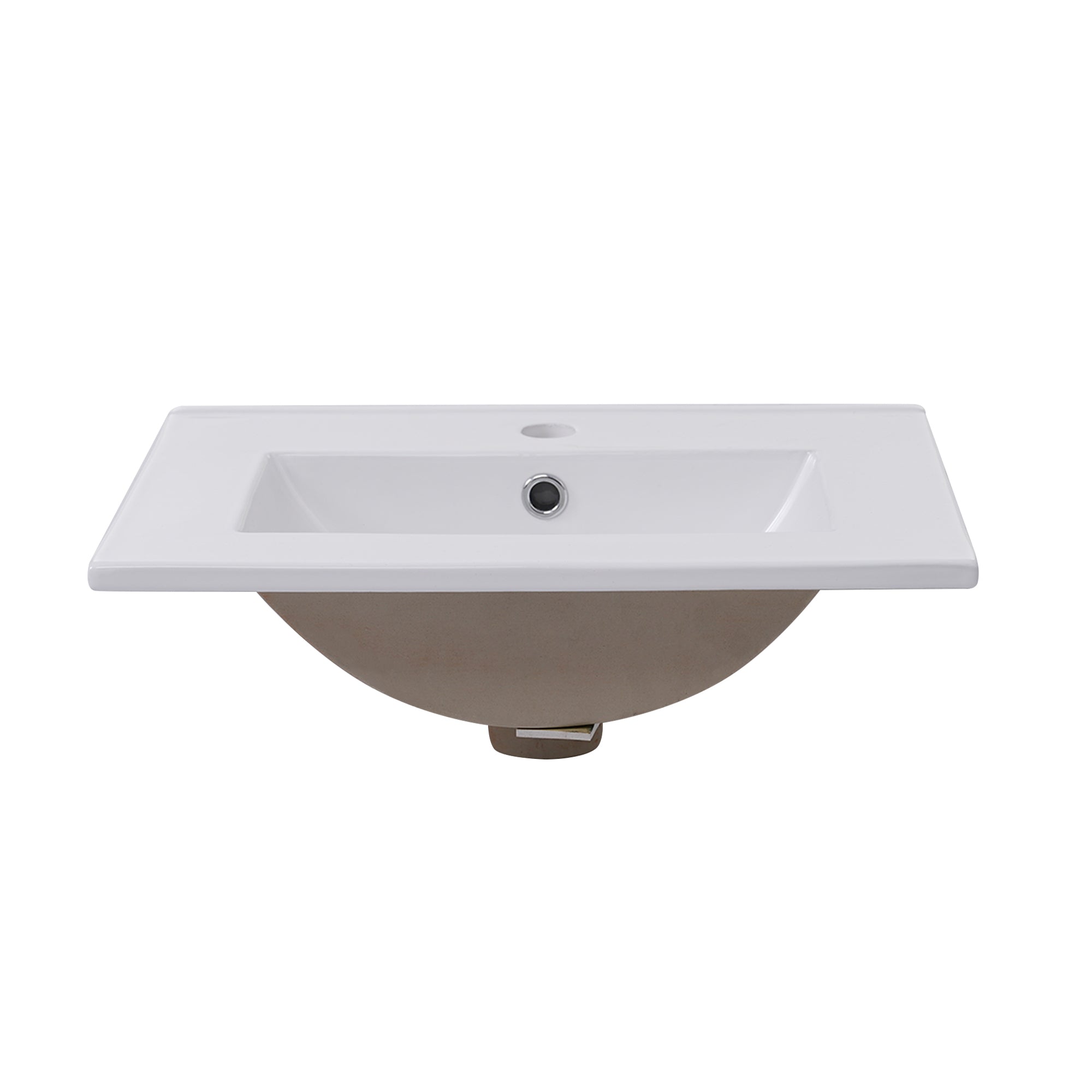 The ceramic one-piece basin is not only elegant but also easy to clean, while the pre-drilled faucet hole and overflow prevention add convenience and safety.