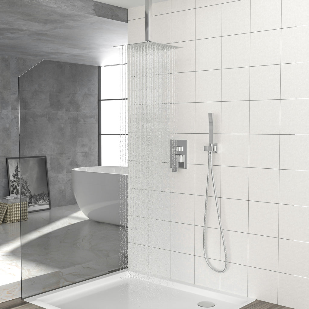 Chrome Dual Shower Head: 12" Square Ceiling Mount