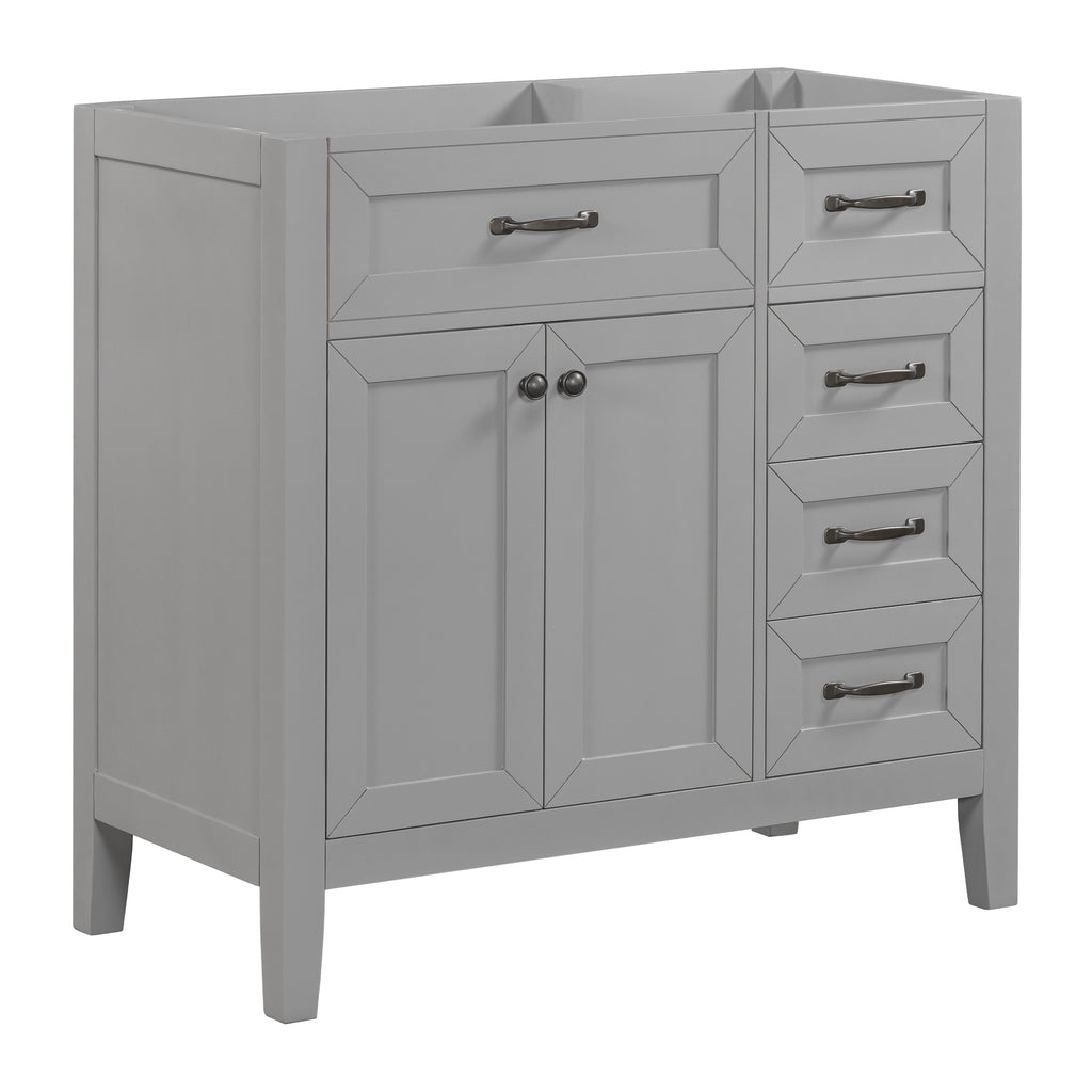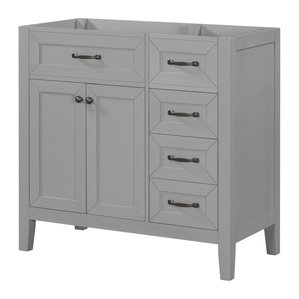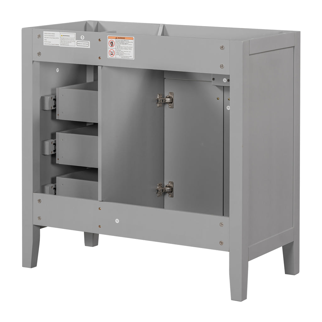 - Stylish 36' Bathroom Vanity Base Only: This 36' bathroom vanity is suitable for bathroom in any decoration style. Freestanding grey vanity cabinet with black handles complies with your bathroom facilities. The groove design on the door and drawer increases the artistry and aesthetics of the home environment. If you're looking for a simple but stylish bathroom sink vanity, our product will be a great choice to upgrade your bathroom.